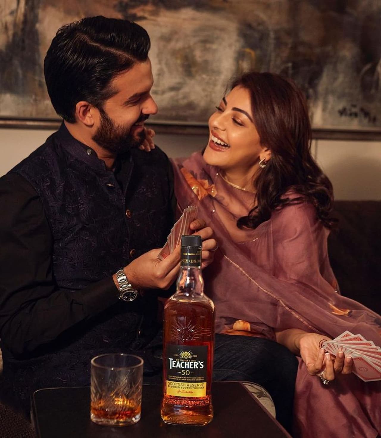 తాజాగా కాజల్ ఆల్కహాల్ బ్రాండ్స్ లో ఒకటైన టీచర్స్ ఫిఫ్టీని ప్రోమోట్ చేస్తూ ఓ పోస్ట్ చేశారు. టీచర్స్ ఫిఫ్టీ అత్యుత్తమమైన స్కాచ్ విస్కీ, మీ పండుగను టీచర్స్ ఫిఫ్టీ విస్కీతో జరుపుకోండి, అంటూ కామెంట్ చేశారు. భర్తతో పాటు ఈ బ్రాండ్ ని ప్రోమోట్ చేసిన కాజల్, గుడ్డిలో మెల్లలా, పరిమితిగా తాగండి, అది కూడా 25ఏళ్ల వయసు పై పడినవారు మాత్రమే, అని చిన్న సలహా పడేసింది.