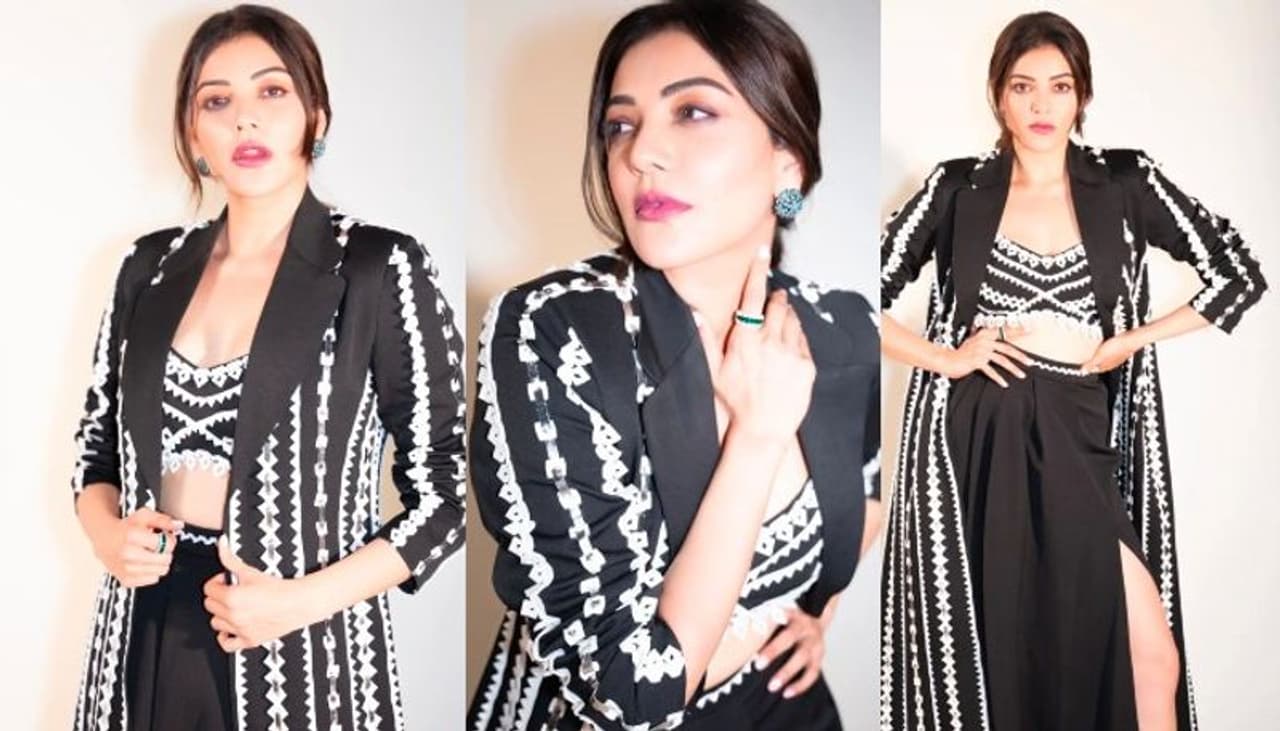 బ్లాక్ కలర్ అవుట్ ఫిట్ లో చందమామ హొయలు.. కాజల్ పెదవులు దగ్గరగా చూస్తే హార్ట్ బీట్ పెరగాల్సిందే