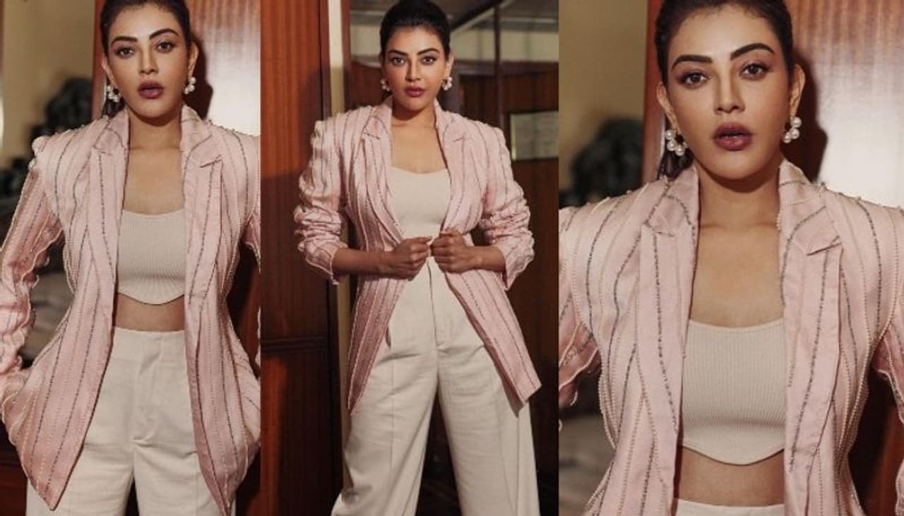 తాజాగా కాజల్ షేర్ చేసిన ఫొటోస్ ఆమె అభిమానులకు ఐఫీస్ట్ అని చెప్పొచ్చు. హాట్ గా స్టైలిష్ గా కాజల్ ఇచ్చిన ఫోజులు దిమ్మతిరిగేలా చేస్తున్నాయి. వైట్ టాప్, ప్యాంట్ ధరించిన కాజల్ దానిపై పింక్ కోట్ వేసుకుంది.