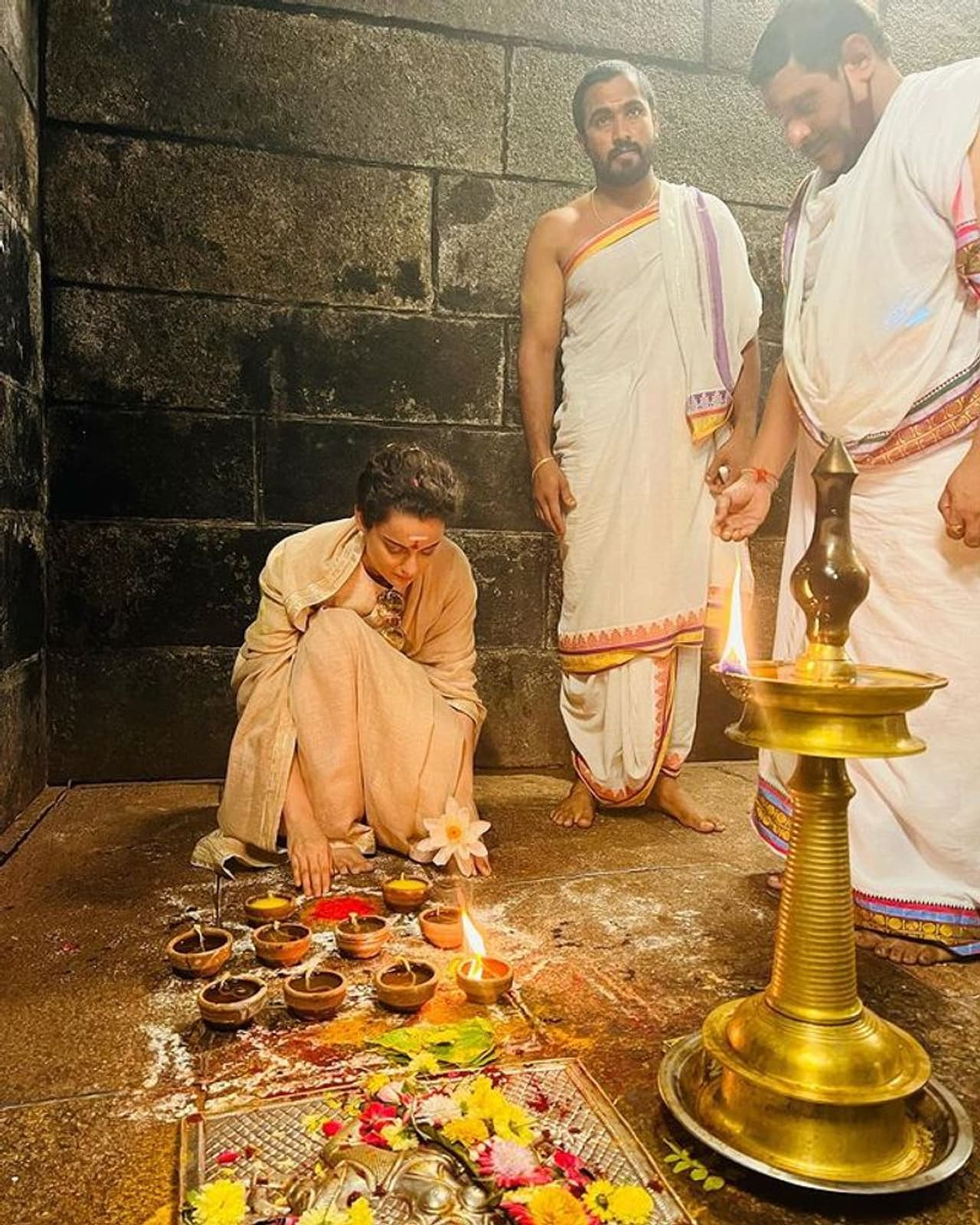 అనంతరం కంగనా గో పూజ కూడా కూడా చేసింది. ఆ దృశ్యాలు ప్రస్తుతం సోషల్ మీడియాలో వైరల్ గా మారాయి. గత ఏడాది కంగనా జయలలిత బయోపిక్ 'తలైవి' చిత్రంలో నటించిన సంగతి తెలిసిందే. Also Read: Chiranjeevi: ఇద్దరు కొట్టుకుంటే పంచాయతీ చేయను, ఇండస్ట్రీ పెద్దగా ఉండను.. తేల్చి చెప్పేసిన చిరంజీవి