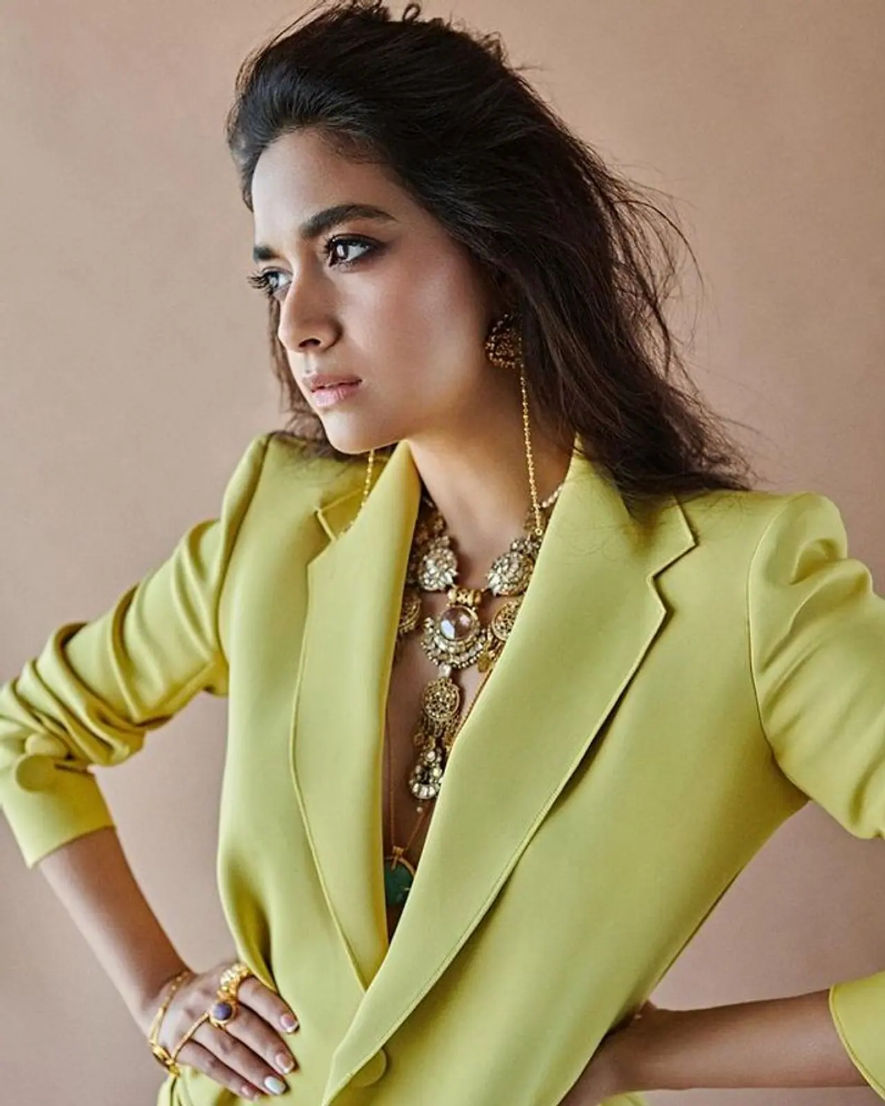 లేటెస్ట్ గా బుధవారం గ్లామర్ ఫోటోలను పంచుకుంది కీర్తిసురేష్. లైట్ గ్రీన్ కలర్లో ఉన్న కోట్ ధరించి కనిపించింది. టాప్ టూ బాట్ గ్రీన్ డ్రెస్లో మెరిసింది. అయితే కోట్ బటన్స్ తీసేసి మరీ హాట్ షోకి తెరలేపింది. అంతేకాదు కిల్లింగ్ లుక్స్ తో కుర్రాళ్ల మైండ్ బ్లాక్ చేస్తుంది. చూపులతోనే గుండెల్ని కోసేస్తుంది కీర్తి సురేష్. Keerthy Suresh Photo Shoot.