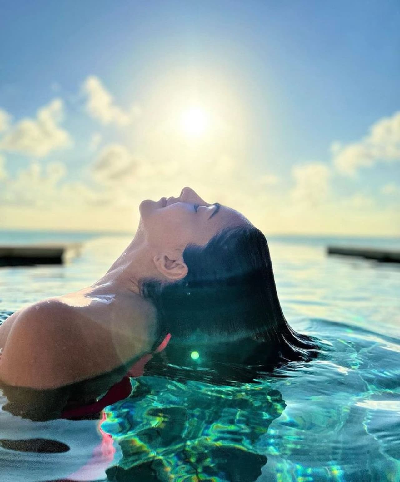కియారా అద్వానీ(Kiara Advani) సంక్రాంతి ఫెస్టివల్ సందర్భంగా తన గ్లామర్ విందుతో కనువిందు చేస్తుంది. ఈ బ్యూటీ సముద్రంలో స్విమ్ చేస్తూ ఎంజాయ్ చేస్తుంది. సూర్యకిరణాలు కియారా అద్వానీ అందాలను ముద్దాడగా, పరవశించిపోతూ తన్మయత్వం చెందుతుందీ అందాల బ్యూటీ. ఈ ఫోటోని నెటిజన్లతో పంచుకుని ఓ రకంగా సంక్రాంతి ట్రీట్ ఇచ్చిందని చెప్పొచ్చు.