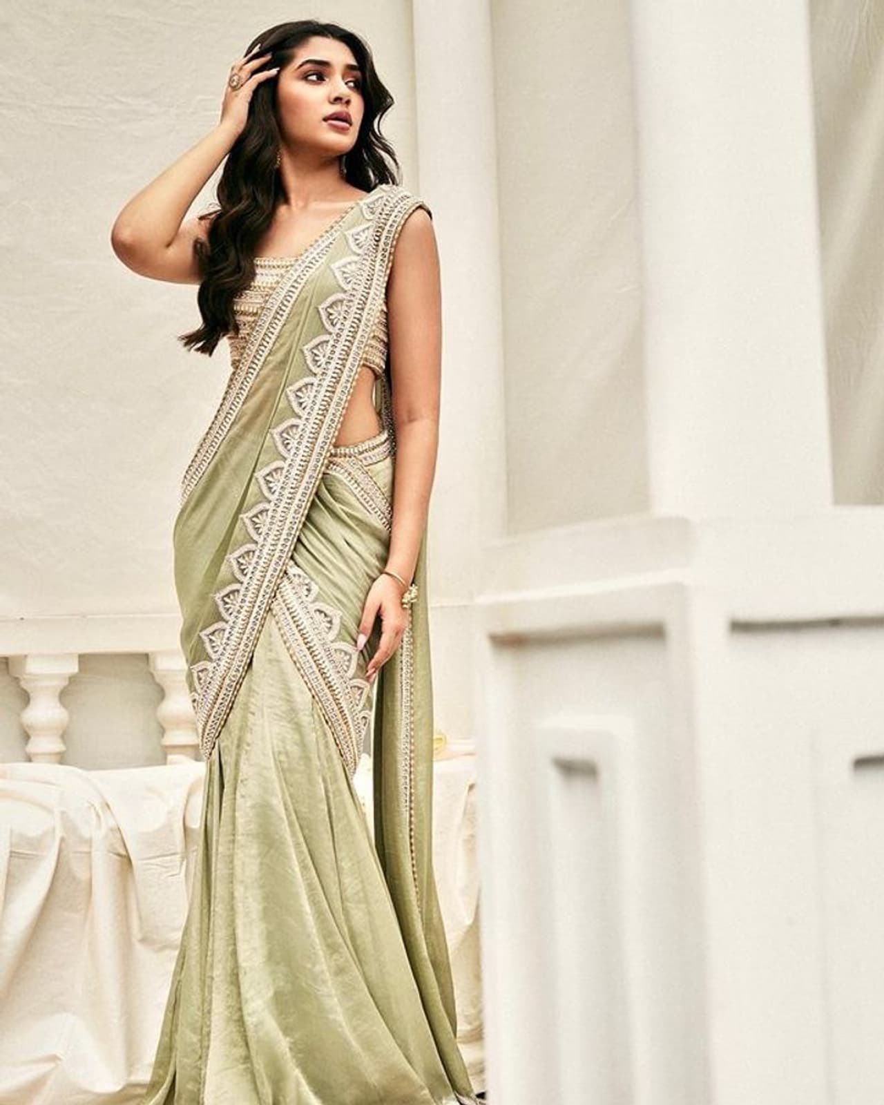 వరుస చిత్రాల్లో నటిస్తూ తెలుగు ప్రేక్షకులను అలరిస్తున్న యంగ్ హీరోయిన్ కృతి శెట్టి (Krithi Shetty) తాజాగా చీరకట్టి కుర్రాళ్లను కవ్విస్తోంది. శారీ అందాలతో నెటిజన్ల గుండె జారేలా చేస్తోందీ కుర్ర భామ.