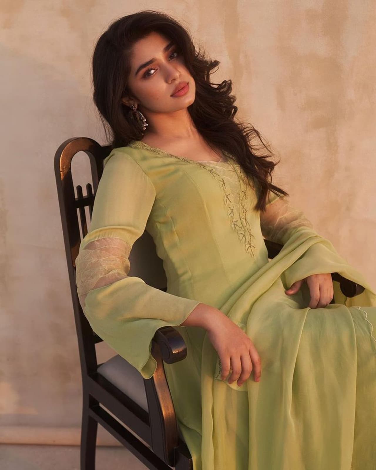 అయితే ఇందులో కృతి శెట్టి విరహంతో కూడిన పోజులివ్వడం విశేషం. చైర్లో కూర్చొని కళ్లల్లో విరహాన్ని నింపుకుని కృతి ఇచ్చిన పోజులు ఘాటు రేపేలా ఉన్నాయి. కుర్రాళ్లకి పిచ్చెక్కించేలా ఉన్నాయి. టైట్ ఫిట్లో పరువాల ఎత్తులు చూపిస్తూ మరింత టెంప్ట్ చేస్తుందీ సెక్సీ భామ.