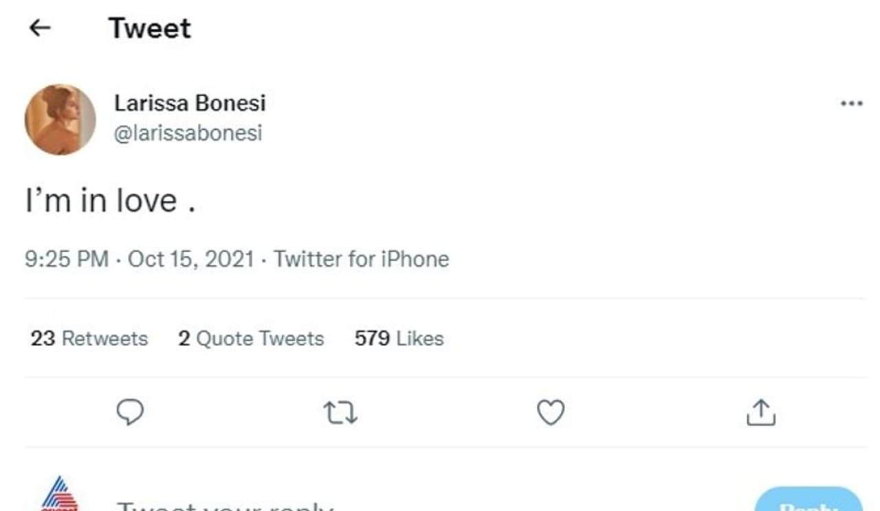 మళ్ళీ లారిస్సా తిరిగి స్పందించింది.. హ హ హ.. ఎప్పటికీ ఎల్లప్పుడూ అంటూ లారిస్సా కామెంట్స్ పెట్టింది. ఈ సంభాషణ జరిగిన కొంతసేపటి తర్వాత లారిస్సా.. నేను ప్రేమలో ఉన్నా అంటూ మరో ట్వీట్ చేసింది. దీనితో వీరిద్దరి లవ్ ఎఫైర్ పై అనుమానాలు బలపడ్డాయి.