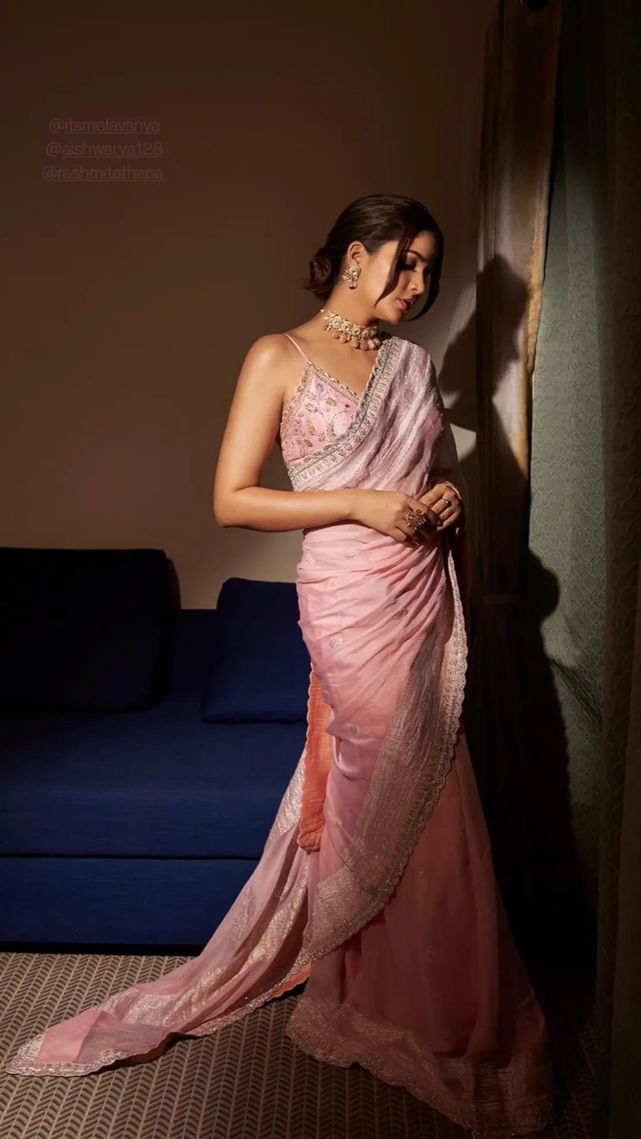 హ్యాపీ బర్త్ డే ప్రమోషన్స్ లో భాగంగా లావణ్య త్రిపాఠి పిక్ కలర్ శారీ, స్లీవ్ లెస్ బ్లౌజ్ లో మెరిసింది. లావణ్య కిల్లింగ్ లుక్స్ తో కళ్ళు చెదిరేలా ఈ చీరకట్టులో ఉంది. చీరకట్టులో ఆమె అందం రెట్టింపు అయ్యిందనే చెప్పాలి. ఏమాత్రం చూపు తిప్పుకోలేని విధంగా వయ్యారాలు ఒలికిస్తూ లావణ్య ఇచ్చిన ఫోజులు మెస్మరైజ్ చేస్తున్నాయి.