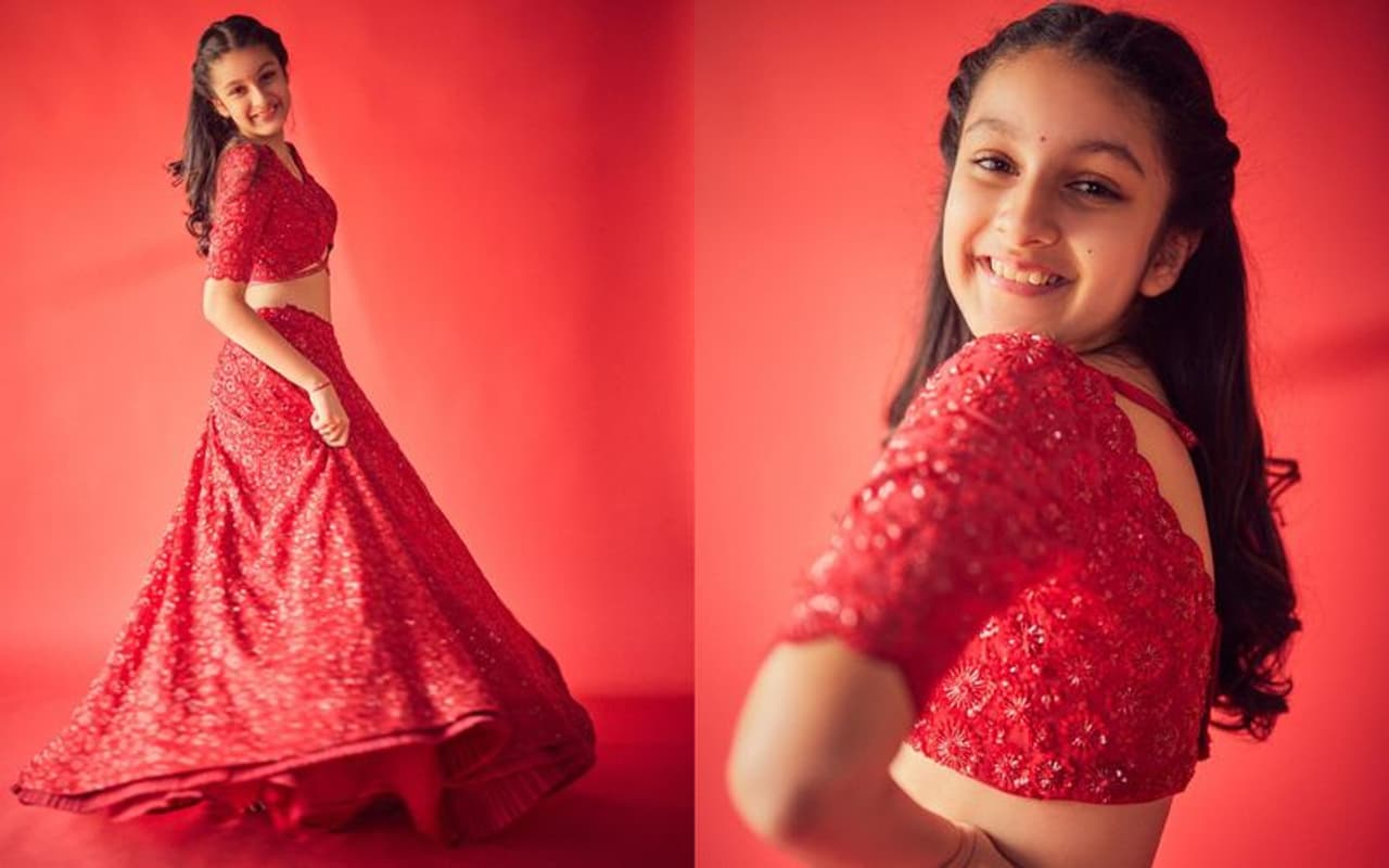 రెడ్ క్రాప్ టాప్ లెహంగాలో మెరిసింది స్టార్ కిడ్ సితార. దసరా పండగ పురస్కరించుకుని ఆమె ఇలా తయారయ్యారు. ఎరుపు ధైర్యానికి, విజయానికి ప్రతీక అట. అందుకే రెడ్ కలర్ డ్రెస్ ధరించిందట సితార. తన అభిమానులకు సితార తనదైన శైలిలో దసరా శుభాకాంక్షలు చెప్పింది.