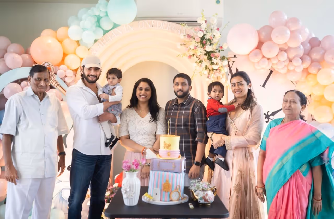 తమ్ముడి కవల పిల్లల పుట్టిన రోజు వేడుకలో మహేష్ బాబు నమ్రత