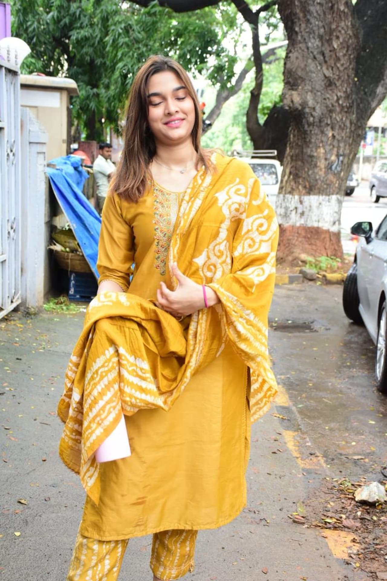 తాజాగా ఆ ఫొటోలు నెట్టింట వైరల్ అవుతున్నాయి. ఎల్లో చూడీదార్ లో సాయీ మంజ్రేకర్ అచ్చమైన తెలుగమ్మాయిలా కనిపిస్తోంది. మూవీలో కాస్తా బోల్డ్ గా కనిపించినా.. బయట మాత్రం చాలా సంప్రదాయంగా కనిపిస్తోంది. ట్రెడిషనల్ వేర్ తో కుర్రాళ్ల గుండెల్ని దోచుకుంటోంది.