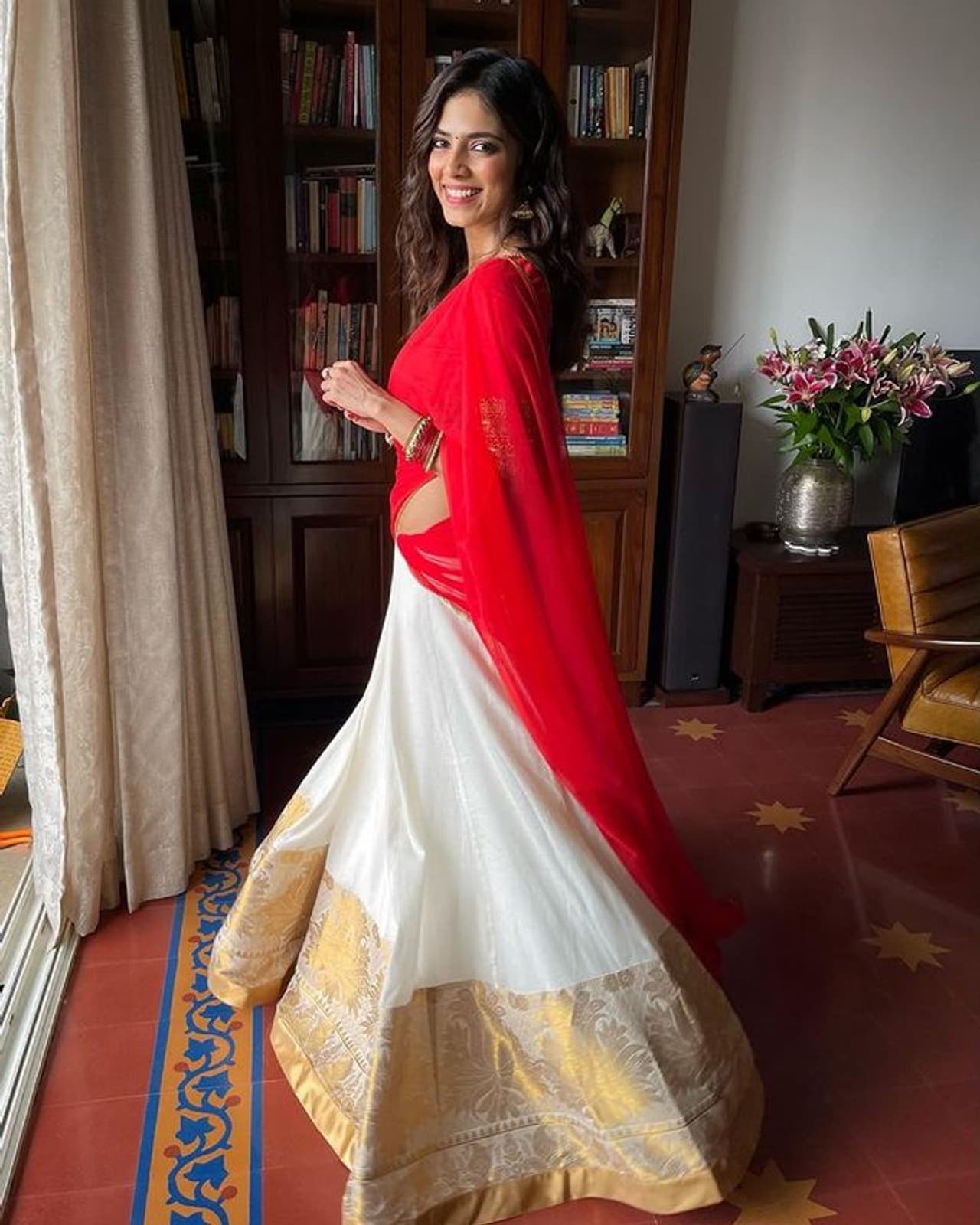 రెడ్, క్రీం కలర్ కాంబోలో ఉన్న హాఫ్ శారీలో మాళవిక కేక పెట్టించే విధంగా ఉంది. ప్రస్తుతం మాళవిక రెండు తమిళ చిత్రాల్లో నటిస్తోంది.