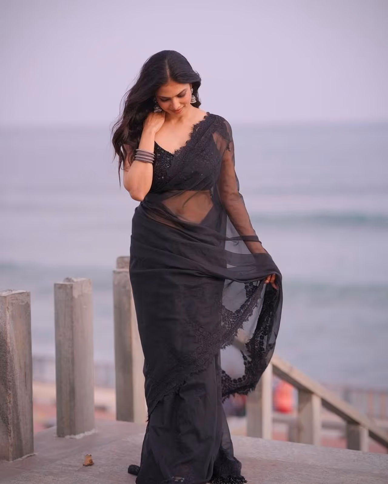 తాజాగా మాళవిక మోహనన్ అదిరిపోయేబ్లాక్ది శారీలో మెరుపులు మెరిపించింది. కళ్ళు చెదిరే విధంగా పలచని బ్లాక్ శారీలో మాళవిక ఫోజులు ఇచ్చింది.