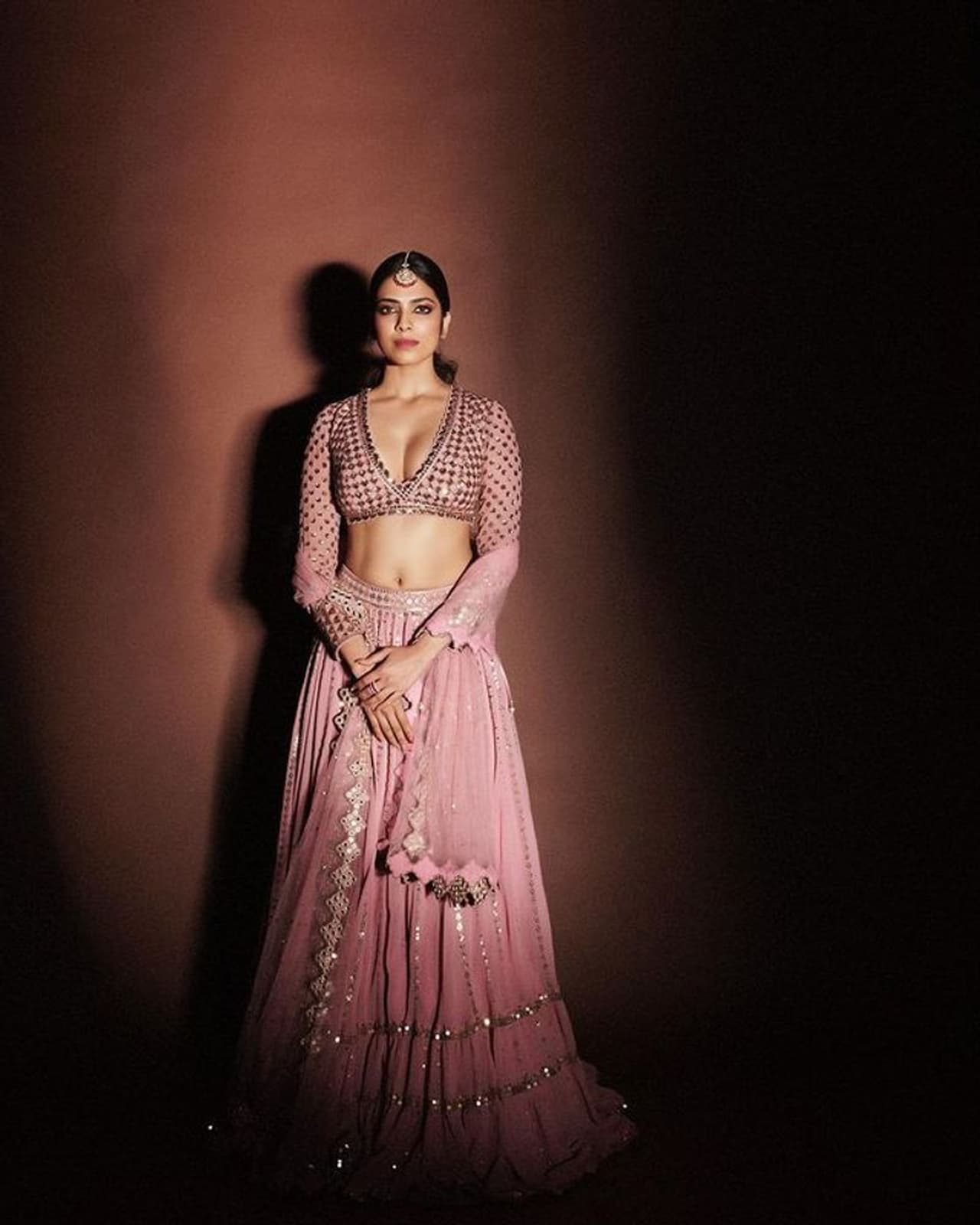 తాజాగా మాళవిక మోహనన్ పింక్ లెహంగా, బ్లౌజ్ లో అందాలు ఆరబోస్తున్న ఫోటోస్ స్టన్నింగ్ అనిపించే విధంగా ఉన్నాయి. చెక్కిన శిల్పాలా ఉన్న మాళవిక తన ఒంపు సొంపులతో కుర్రాళ్లని ఉడికిస్తోంది. నడుము, క్లీవేజ్ అందాలు ఆరబోస్తూ చూపు తిప్పుకోలేని విధంగా మాళవిక ఆకట్టుకుంటోంది.