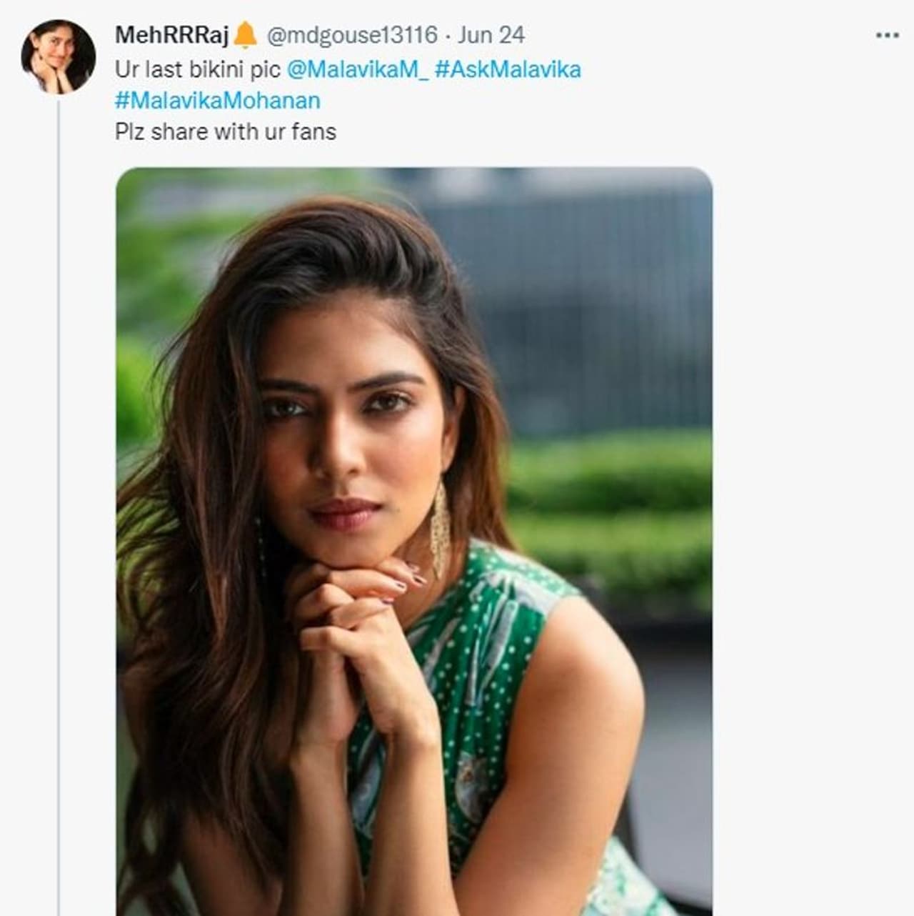 ఇక సోషల్ మీడియాలో యాక్టివ్ గా ఉండే మాళవిక అభిమానులతో టచ్ లో ఉంటుంది. రీసెంట్ గా మాళవిక ట్విట్టర్ లో ఆస్క్ మాళవిక అంటూ ఫ్యాన్స్ తో చాట్ సెషన్ నిర్వహించింది. ఈ సెషన్ లో అభిమానులు అడిగిన అనేక ప్రశ్నలకు మాళవిక సమాధానం చెప్పింది.