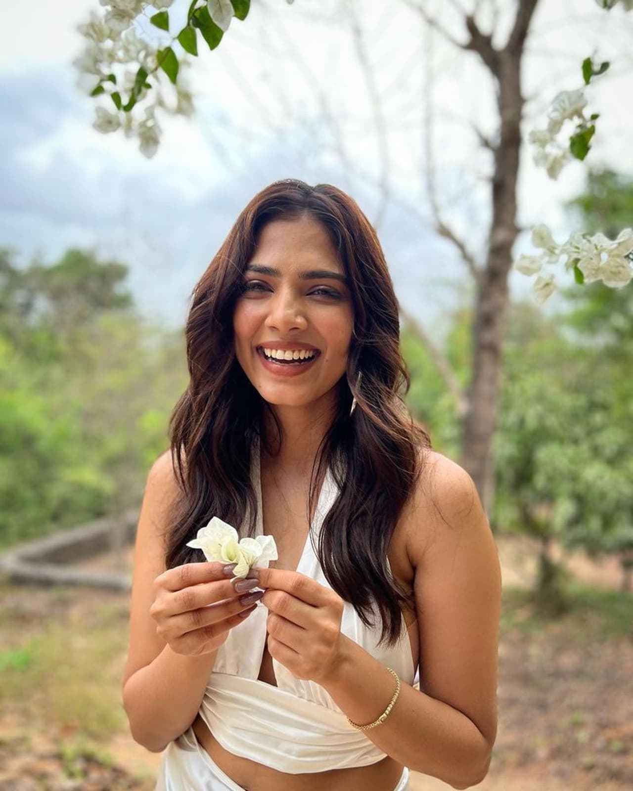 మాళవిక మోహనన్ లేటెస్ట్ గా ఓ గ్రీనరీ లొకేషన్లో చిలిపిగా నవ్వుతూ దిగిన రెండు ఫోటోలను పంచుకుంది. చూడబోతే వెకేషన్ పిక్స్ మాదిరిగా ఉన్నాయి. వైట్ ట్రెండీ టాప్ ధరించి టాప్ అందాలను కొద్దికొద్దిగా చూపిస్తూ దోబూచులాడుతుంది. చేతిలో ఫ్లవర్స్ తో చిలిపిగా నవ్వుతుంది మాళవిక. (Malavika Mohanan Hot Photos.