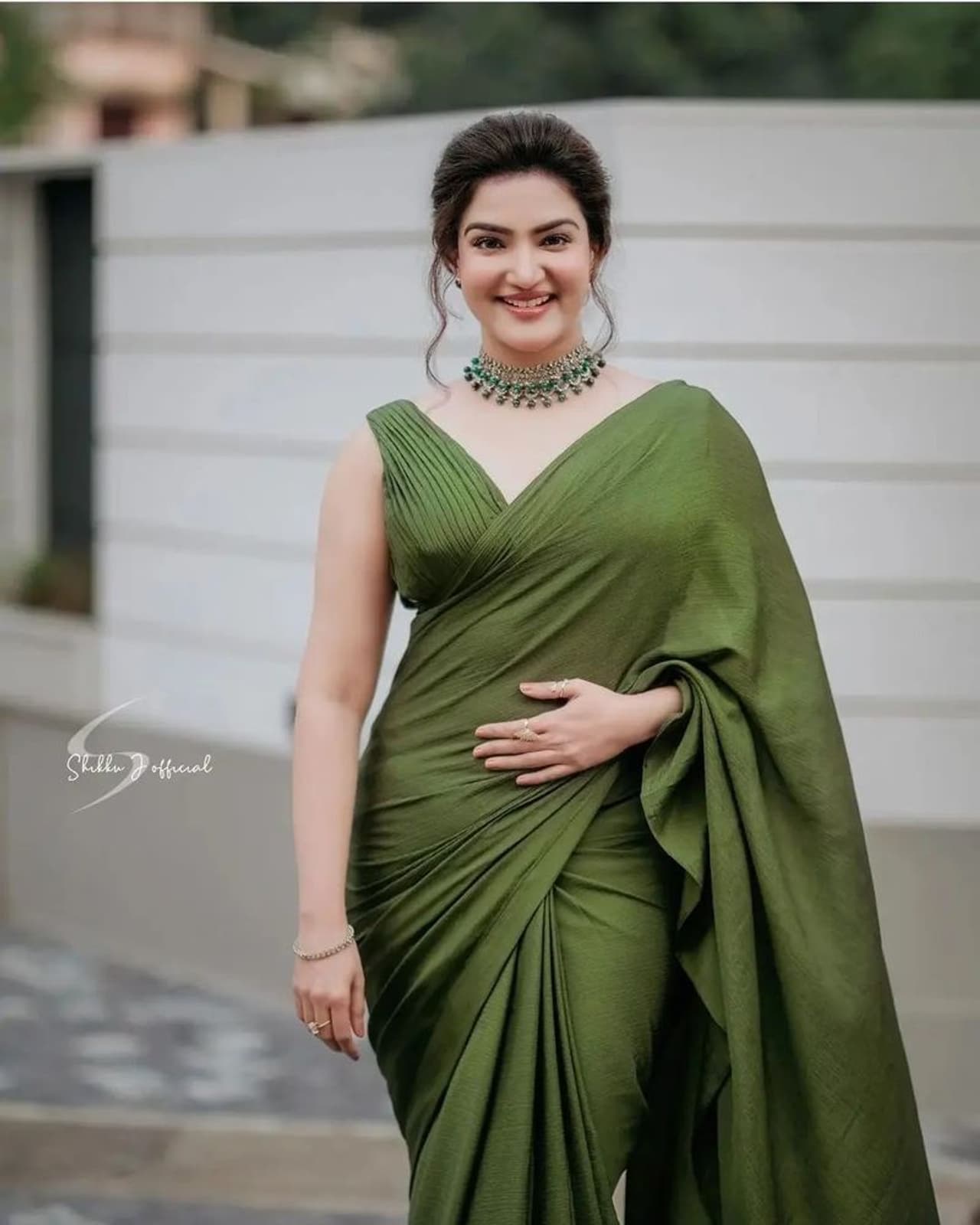 ట్రెడిషనల్ మరియు ట్రెండీ వేర్స్ లో అందాల విందు చేస్తున్న హానీ రోజ్ తాజాగా చీరకట్టులో దర్శనమిచ్చారు. గ్రీన్ శారీలో చీరకే అందం తెచ్చింది. స్లీవ్ లెస్ బ్లౌజ్ లో టాప్ గ్లామర్ షోతో మతులు పోగొట్టింది. ఈమెరిసిపోయే అందానికి నెటిజన్లు సైతం ఫిదా అవుతున్నారు.