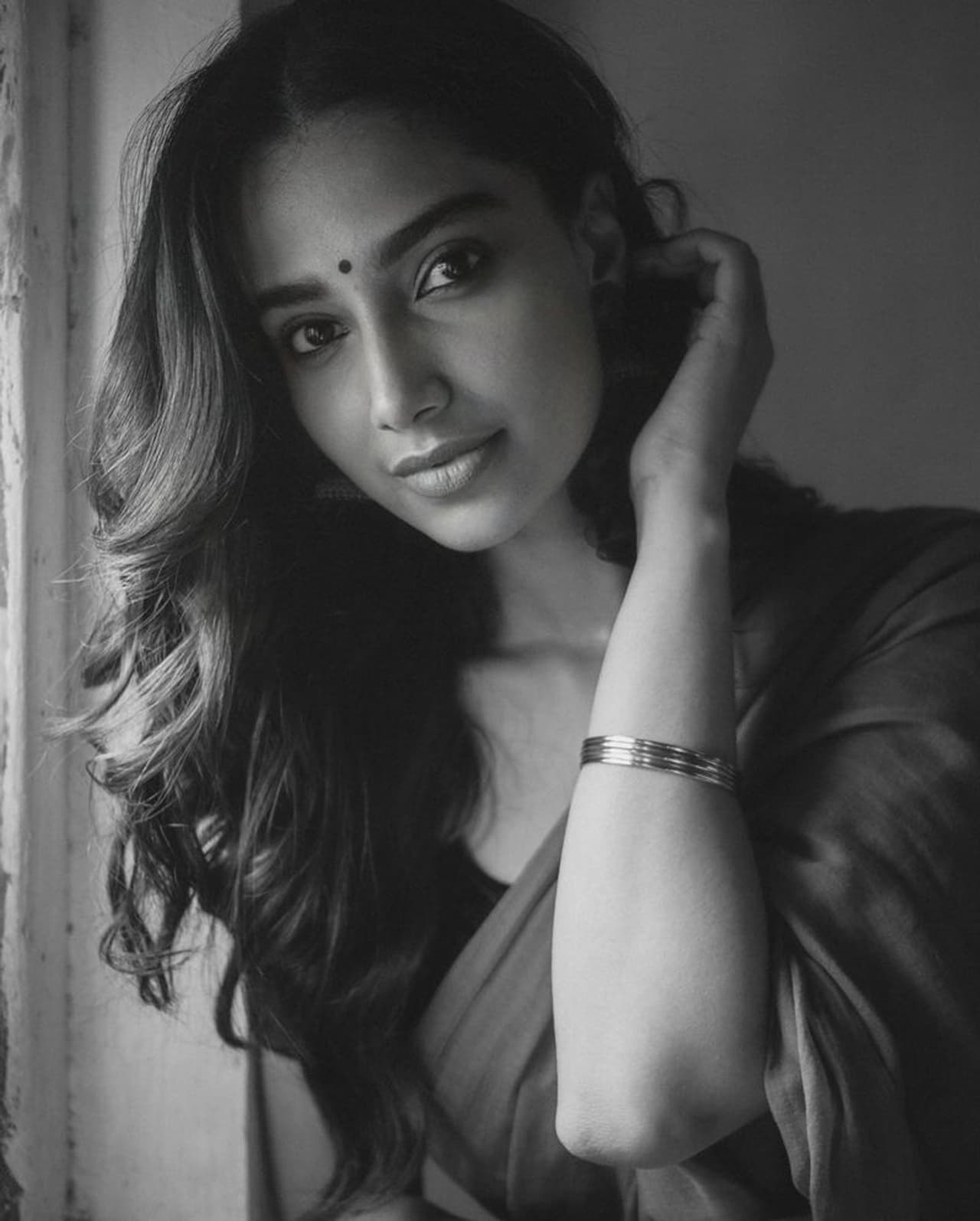 బ్లాక్ అండ్ వైట్ లోనూ మీనాక్షి చౌదరి చాలా బ్యూటీఫుల్ గా కనిపిస్తోంది. ఇటీవల చీరకట్టులో మెరుస్తున్న ఈ బ్యూటీ తాజాగా సింపుల్ శారీలో ఫుల్ స్లీవ్ బ్లౌజ్ లో పద్ధతిగా మెరిసింది. కానీ మత్తెక్కించే ఫోజులతో కుర్ర హృదయాలను పిండేసింది. మీనాక్షి కిర్రాక్ స్టిల్స్ కు నెటిజన్లు ఫిదా అవుతున్నారు.