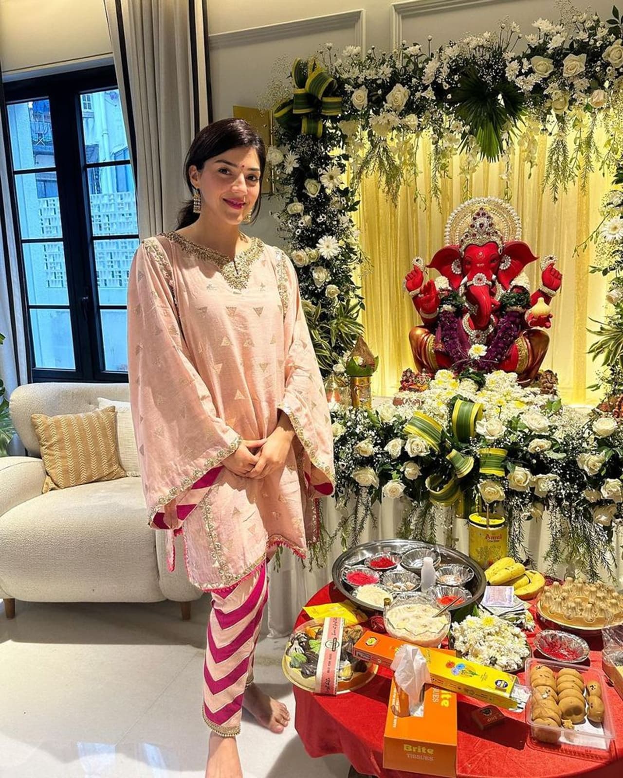 ఈ క్రమంలో తాజాగా ట్రెడిషనల్ లుక్లో మెరిసింది మెహరీన్. వినాయక చవితి పండుగ సందర్భంగా ఆమె వినాయక పూజలో పాల్గొంది. ఈ సందర్భంగా ట్రెడిషనల్గా ముస్తాబైంది. నిండుగా దుస్తులు ధరించి హోమ్లీ బ్యూటీగా మారిపోయింది. హాట్ షో చేయకపోయినా ఈ పంజాబీ బ్యూటీ టూ సెక్సీగానే ఉండటం విశేషం.