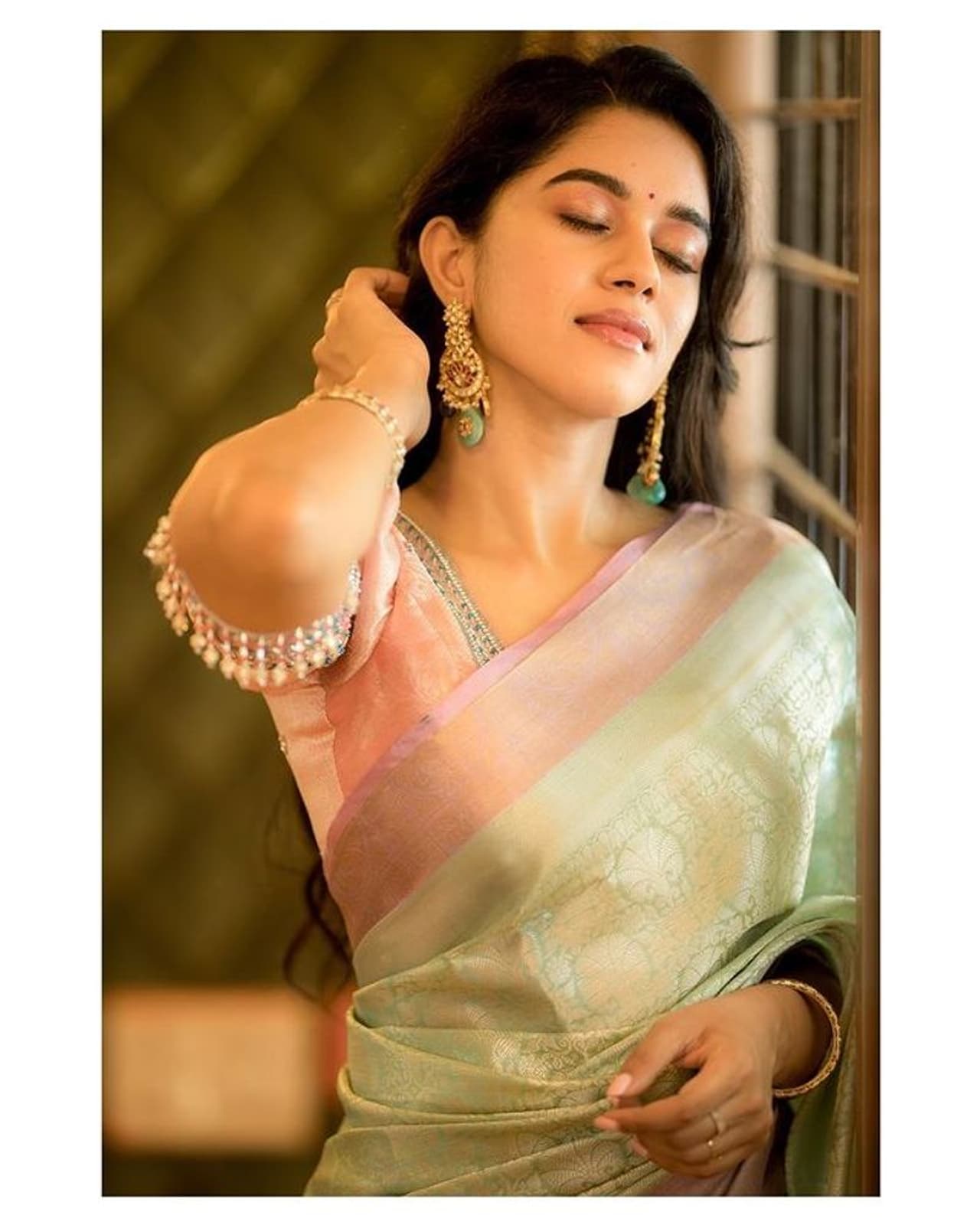 నడుము సొగసు చూపుతూ కుర్రాళ్లకు కనువిందు చేస్తోంది. ఆమె నాజూకైన అందాలకు ఎవరైనా ఫిదా అవుతారు. తాజాగా అందమైన చీర కట్టులో మెరిసింది.తేనెలొలికించేలా ఉన్న తన అందాలతో చీరకట్టులో మెస్మరైజ్ చేస్తోంది ఈ యంగ్ బ్యూటీ. కుర్రాళ్లు ఆమె సోయగాల వలకు చిత్తైపోతున్నారు. ఏమందం రా బాబూ అంటూ కామెంట్స్ తో మోతెక్కిస్తున్నారు.