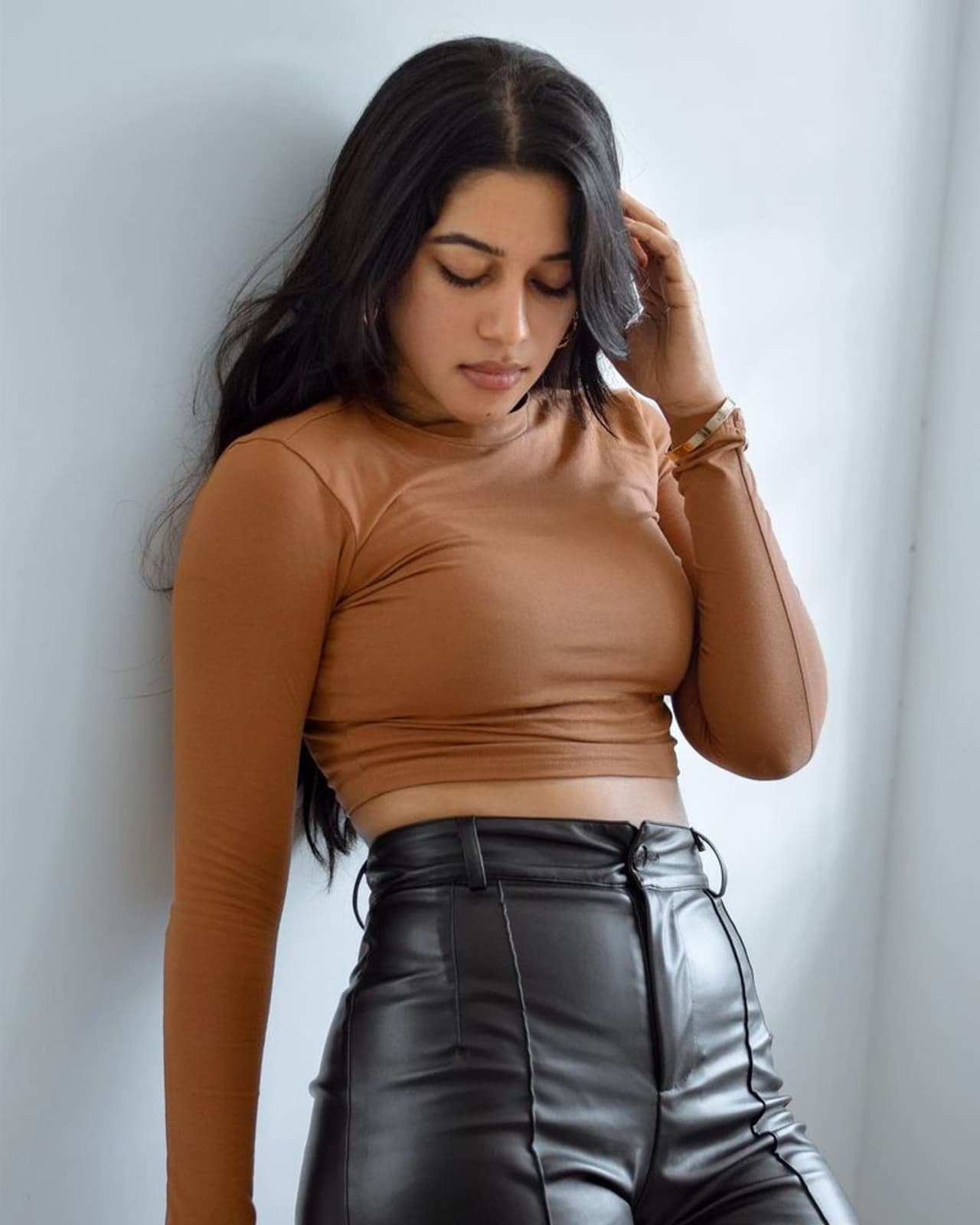 నడుము సొగసు చూపుతూ కుర్రాళ్లకు కనువిందు చేస్తోంది. ఆమె నాజూకైన అందాలకు ఎవరైనా ఫిదా అవుతారు. తాజాగా మృణాళిని బ్లాక్ లెదర్ ప్యాంట్ ధరించి ఇస్తున్న ఫోజులకు ఈ సమ్మర్ లో హీట్ పెంచే విధంగా ఉన్నాయి.