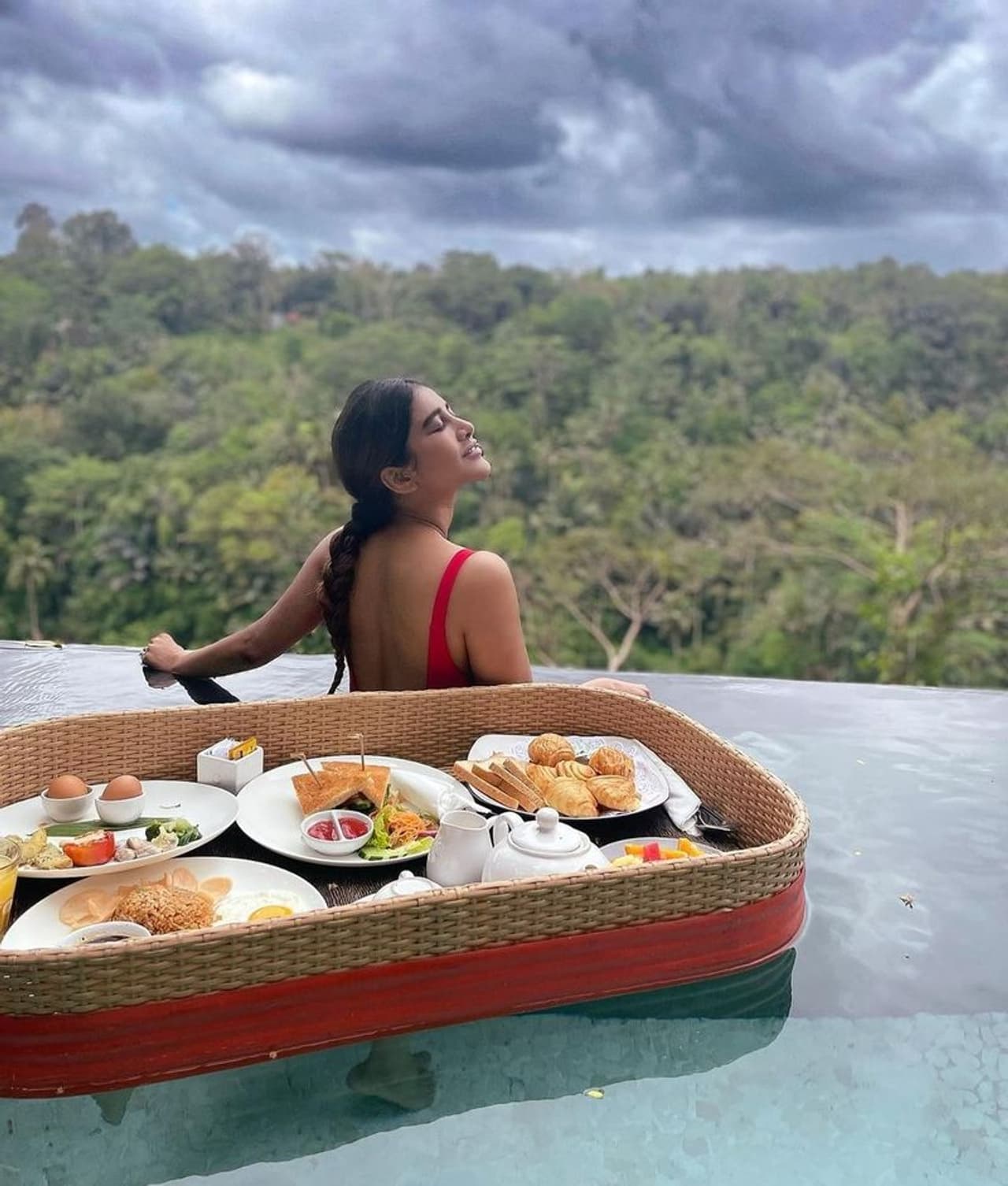 మార్నింగ్ బ్రేక్ ఫాస్ ఫుడ్ని సముద్రపు మధ్యలో తీసుకుంటూ ఆమె ఫోటోలకు పోజులిచ్చింది. బికినీలో అందాల విందు, ముందేమో బ్రేక్ ఫాస్ట్ మొత్తంగా కనువిందు చేస్తుంది. నెటిజన్లకి అందాల విందు తనకేమో, బ్రేక్ఫాస్ట్ విందు రెండు బాగా సెట్ అయ్యాయి.