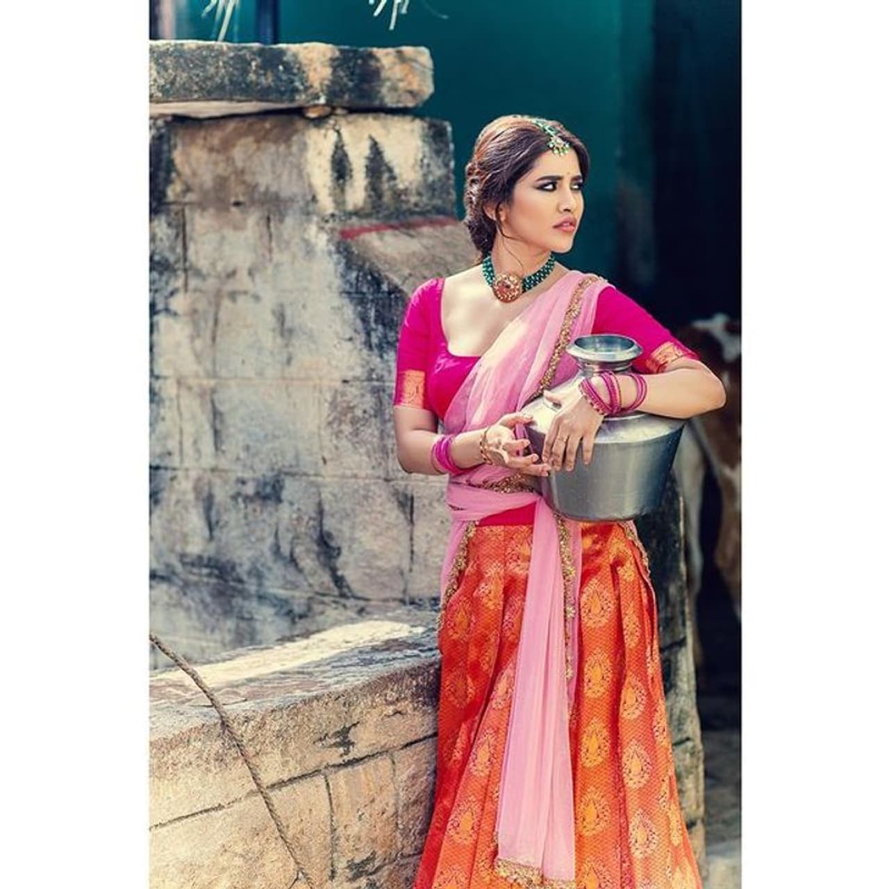 నడుముపై బిందె, పల్లెటూరి పడుచు పిల్లలా రెచ్చిపోయిన నభా.. లంగాఓణీలో వయ్యారాల విందు