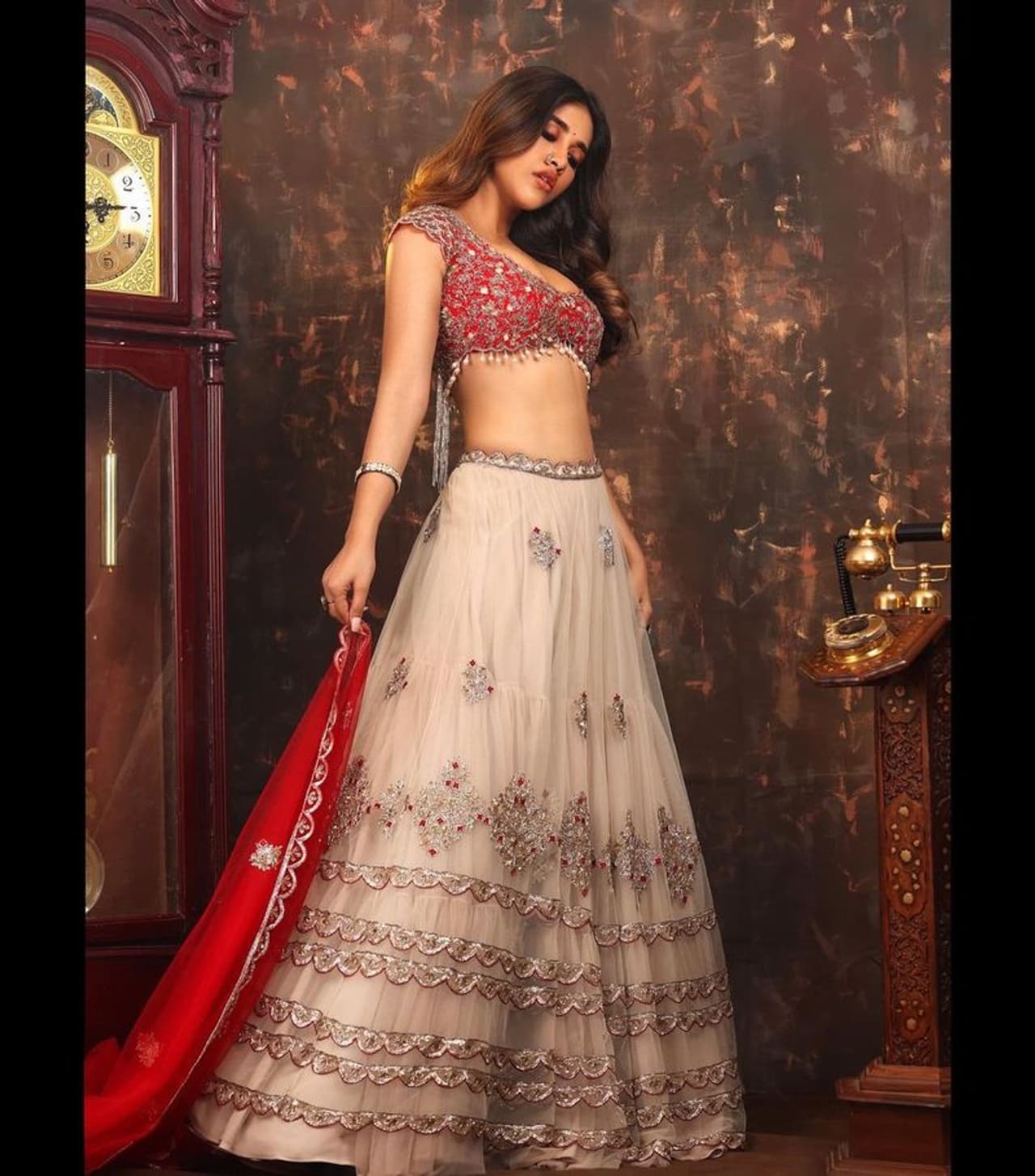 ఆ మధ్యన సోషల్ మీడియాలో సైలెంట్ గా ఉన్న నభా నటేష్ తిరిగి ఇంటెన్సిటీ పెంచింది. తాజాగా నభా నటేష్ షేర్ చేసిన ఫోటోలు చూస్తే కుర్ర హృదయాలు చెల్లాచెదురు కావలసిందే. మైండ్ బ్లోయింగ్ లెహంగాలో నభా వయ్యారాలు ఒలకబోస్తున్న విధానం కుర్రకారుని గిలిగింతలు పెడుతోంది.