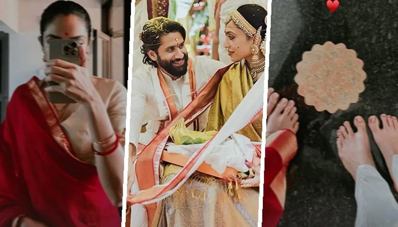 ఒక ఫోటోలో, శోభిత ఎర్రటి చీరలో, జుట్టును చక్కగా జడ వేసుకుని పండుగ వైభవాన్ని ప్రతిబింబిస్తుంది. మరో ఫోటోలో ఆమె, నాగ చైతన్య పాదాలను హార్ట్ ఎమోజితో అలంకరించారు. చివరి స్లైడ్లో ప్రసాదం ఉంది. ఇలా వారిద్దరు తమ మొదటి పండుగను అద్భుతంగా సెలబ్రేట్ చేసుకున్నారు.