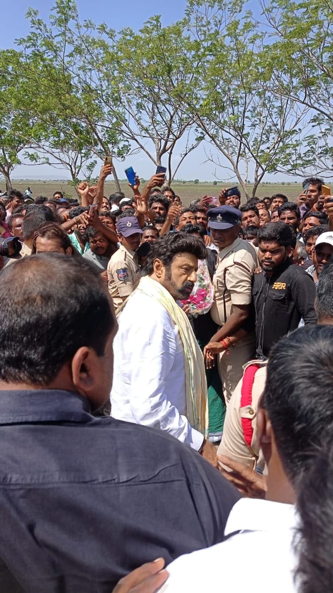 మరికొన్ని పిక్స్ లో బాలయ్య నడుస్తూ వస్తుండగా అభిమానులు పెద్ద ఎత్తున చుట్టుముట్టారు. ఈ ఫొటోస్ లో బాలయ్య లుక్ నందమూరి ఫ్యాన్స్ కి ట్రీట్ లా మారింది.