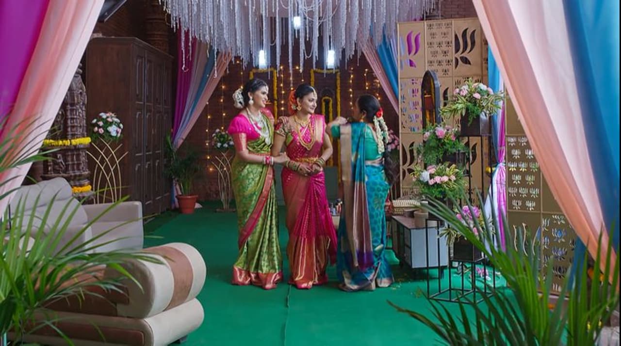 సీరియల్ ప్రారంభంలోనే కళ్యాణ మండపాన్ని చూపిస్తారు. చిత్ర, సులోచన పెళ్లికి వచ్చిన బంధువులను ఆహ్వానిస్తూ ఉంటారు. మాళవిక కూడా కళ్యాణ మండపానికి వస్తుంది సులోచన, వేద వాళ్ళ అక్క వేదను రెడీ చేసి ఎంత అందంగా ఉన్నావు అంటూ సులోచన వేద కు దిష్టి తీస్తుంది.