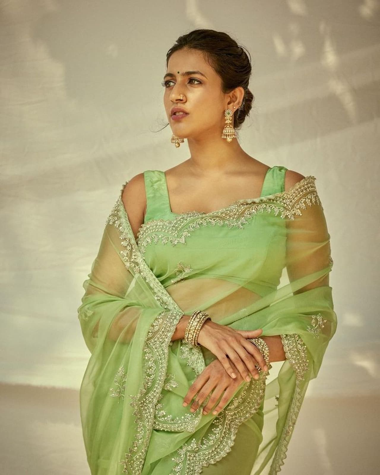 అందులో భాగంగా ఇప్పుడు చీరలో మెరిసింది నిహారిక. ఉల్లిపొర కంటే పలుచని చీర కట్టింది. లేత ఆకుపచ్చ కలర్లో మెరిసిపోతూ వయ్యారాలు ఒలకొబోసింది. స్లీవ్ లెస్ బ్లౌజ్లో తన పరువాల సోకులు చూపిస్తుంది.
