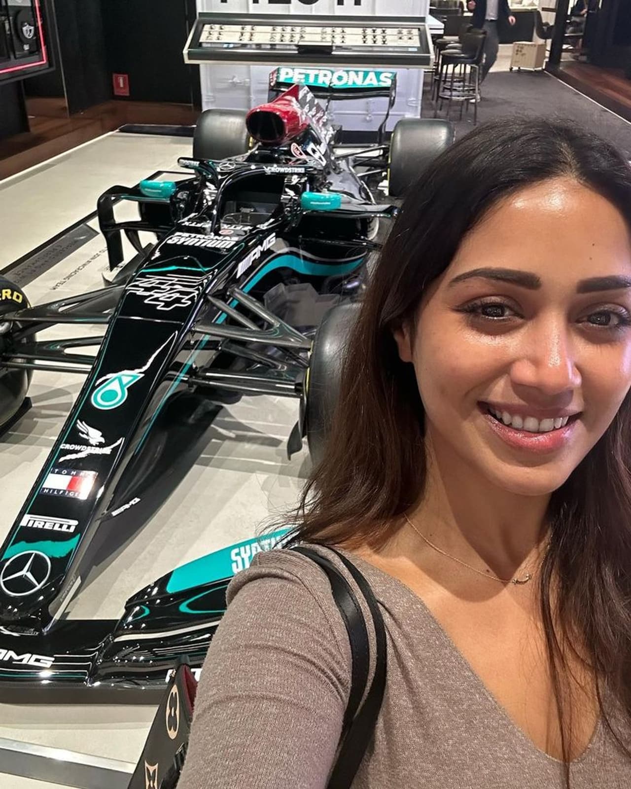 ధమ్కీ పిల్ల క్రేజీ లుక్స్ వైరల్ .. రేసింగ్ కార్ల వద్ద నివేత పేతురాజ్ అందాల జోరు