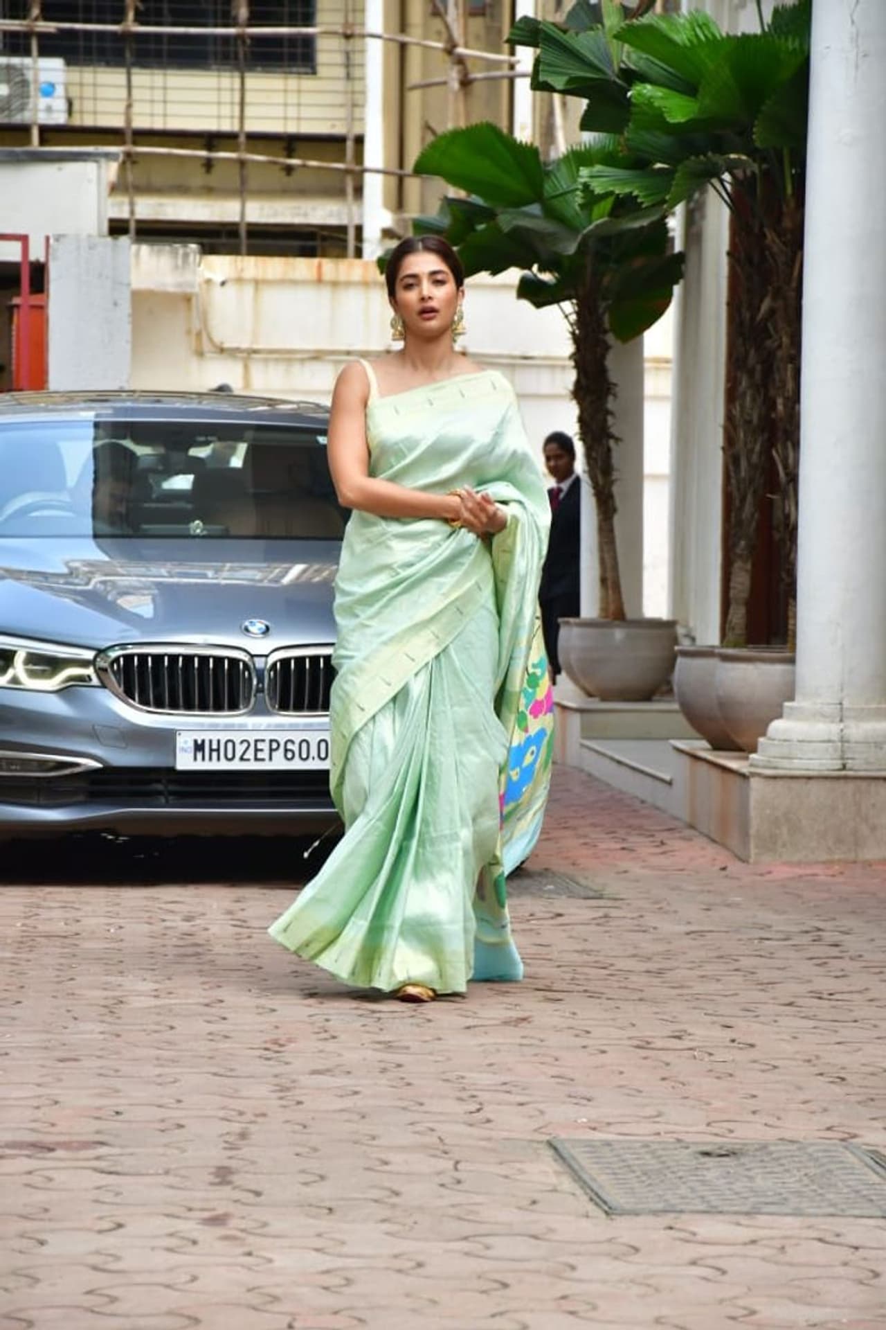 శిల్పా శెట్టి నివాసంలో నిర్వహించిన గణేష్ ఉత్సవాల్లో పూజా హెగ్డేతో పాటు పలువురు బాలీవుడ్ తారలు పాల్గొన్నారు. పూజా హెగ్డే శారీ అవుట్ ఫిట్ ప్రతి ఒక్కరిని అట్రాక్ట్ చేసింది.