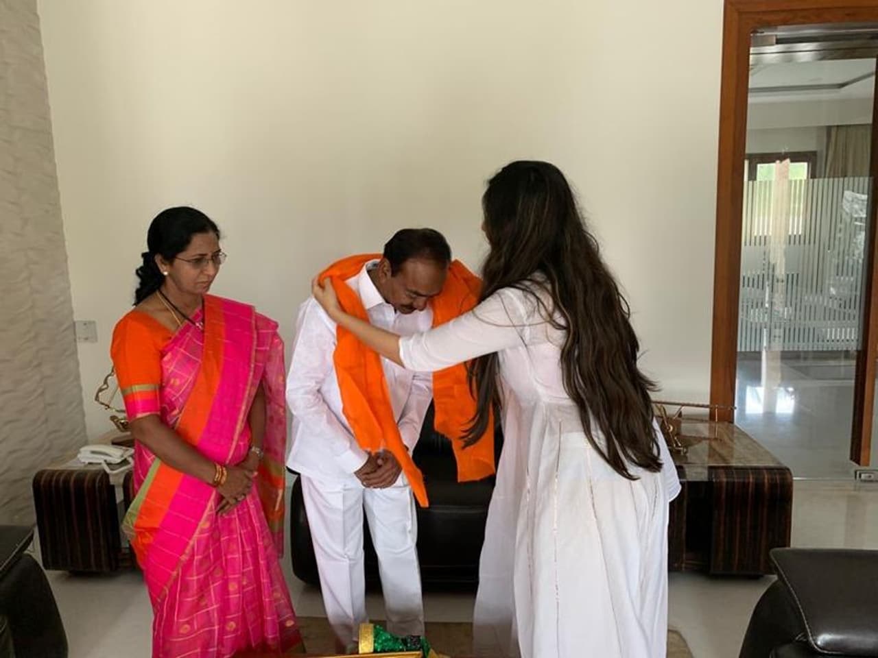 ఆయనకు ఏక్ ఒంకార్ అని రాసి ఉన్న ఫొటోను ఈటల దంపతులకు అందజేశారు. ఈ ఫొటోలను షేర్ చేసిన పూనమ్ కౌర్.. ధర్మ పోరాటం ఎప్పటికీ గెలుస్తందని.. హుజురాబాద్ ఉప ఎన్నికను ఉద్దేశించి కామెంట్స్ చేశారు.