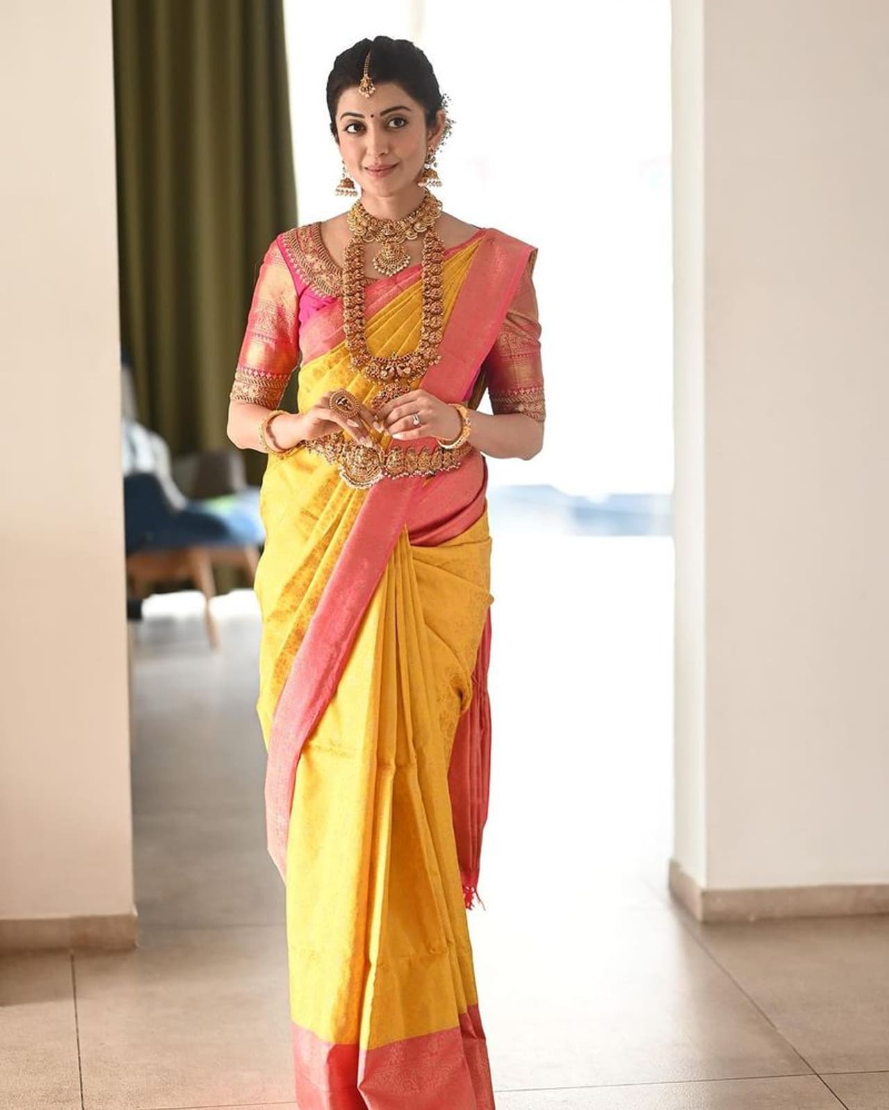 ఒంటినిండా నగలు, ట్రెడిషనల్ లుక్లో ప్రణితా సుభాష్ మైండ్ బ్లాక్ పోజులు.. పట్టుశారీలో హాట్నెస్ ఓవర్లోడ్