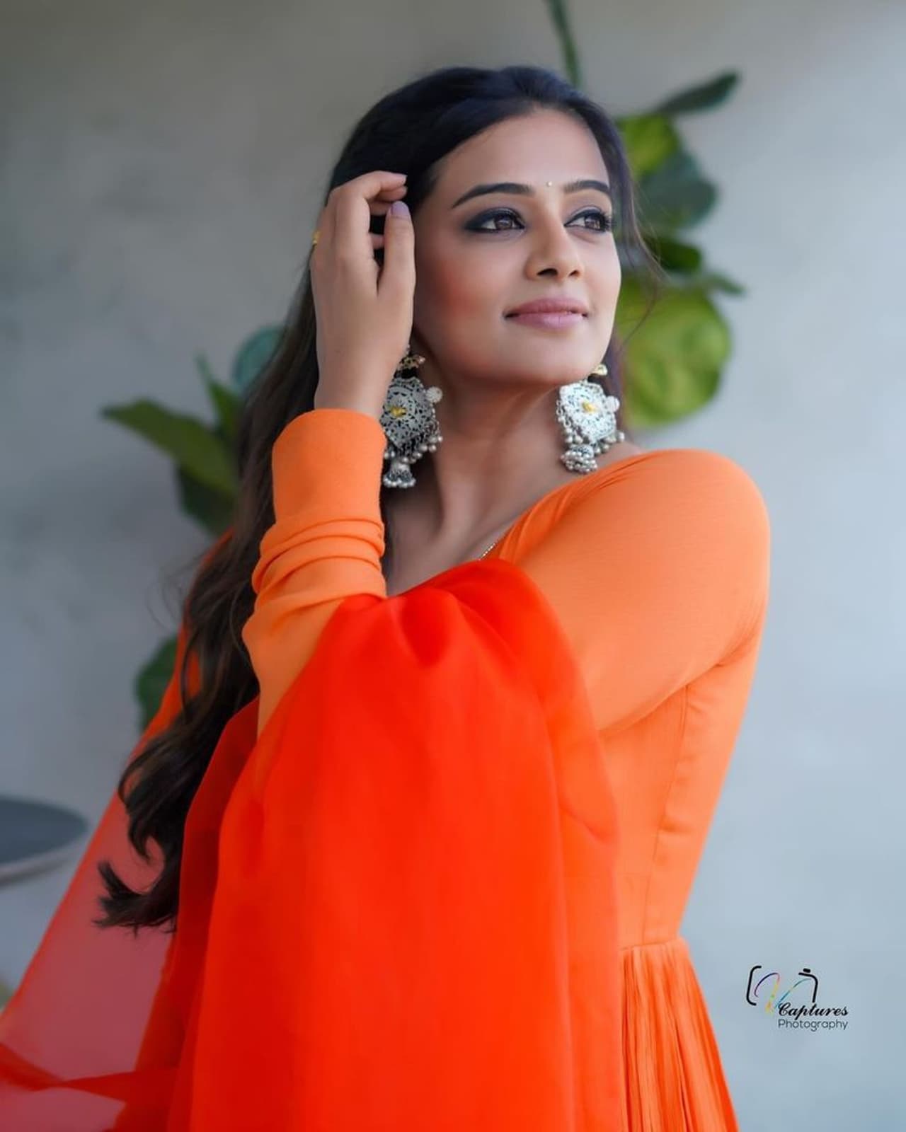 తాజాగా ప్రియమణి ఆరెంజ్ కలర్ డ్రెస్ లో మెరిసిపోతూ ఫోజులు ఇచ్చింది. మతిపోగొట్టే విధంగా టాప్ టూ బాటమ్ నిండైన సొగసుతో కట్టిపడేస్తుంది. ఆమె వయసు 39 ఏళ్ళు. నాలుగు పదుల వయసు సమీపిస్తున్నప్పటికీ ప్రియమణి ఆ గ్రామర్ పదును ఇంకా తగ్గలేదు.