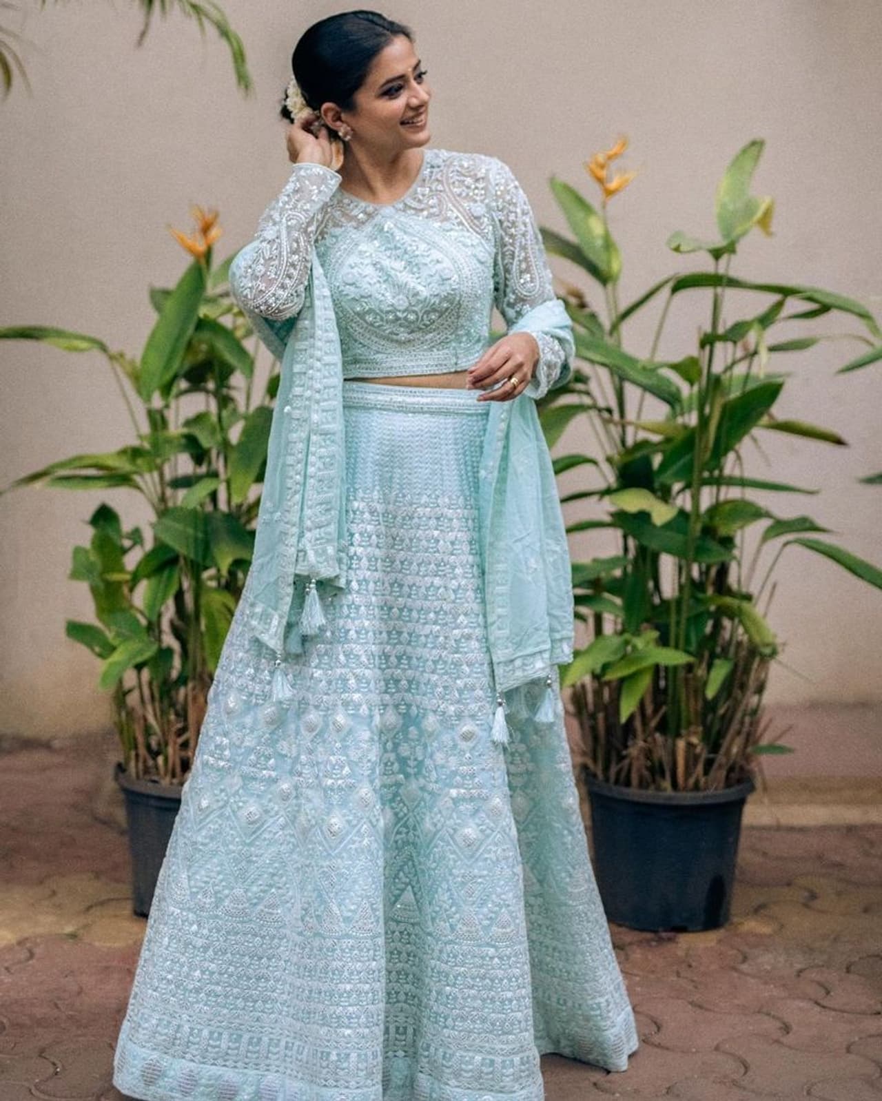 ప్రియమణి లేటెస్ట్ ఫోటోలు సోషల్ మీడియాలో వైరల్ గా మారాయి. క్లాసీ లుక్ తో ప్రియమణి హొయలు ఒలికిస్తోంది. కళ్ళు చెదిరేలా ఉన్న స్కై బ్లూ డ్రెస్ ప్రియమణి అందాల యువరాణిలా మెస్మరైజ్ చేస్తోంది. ప్రియమణి లెహంగాలో వయ్యారంగా నిలబడి ఉండడంతో యువత మైమరచిపోతున్నారు. కొప్పున మల్లె పూలు పెట్టుకుని ప్రియమణి ట్రెడిషనల్ లుక్ లో కవ్విస్తోంది.