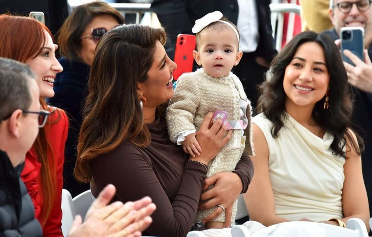 సోమవారం కుమార్తె మాల్తీ మేరీతో కలిసి మొదటిసారిగా బహిరంగంగా కనిపించింది. నిక్ జోనాస్, అతని టీమ్ కు హాలీవుడ్ వాక్ ఆఫ్ ఫేమ్ స్టార్ అవార్డును అందజేశారు. ఈ కార్యక్రమానికి ప్రియాంక కూతురితో హాజరై సందడి చేశారు. క్రీమ్ స్వెటర్, మ్యాచింగ్ షార్ట్లు ధరించిన బేబీ మాల్టీ అందంగా కనిపించింది.