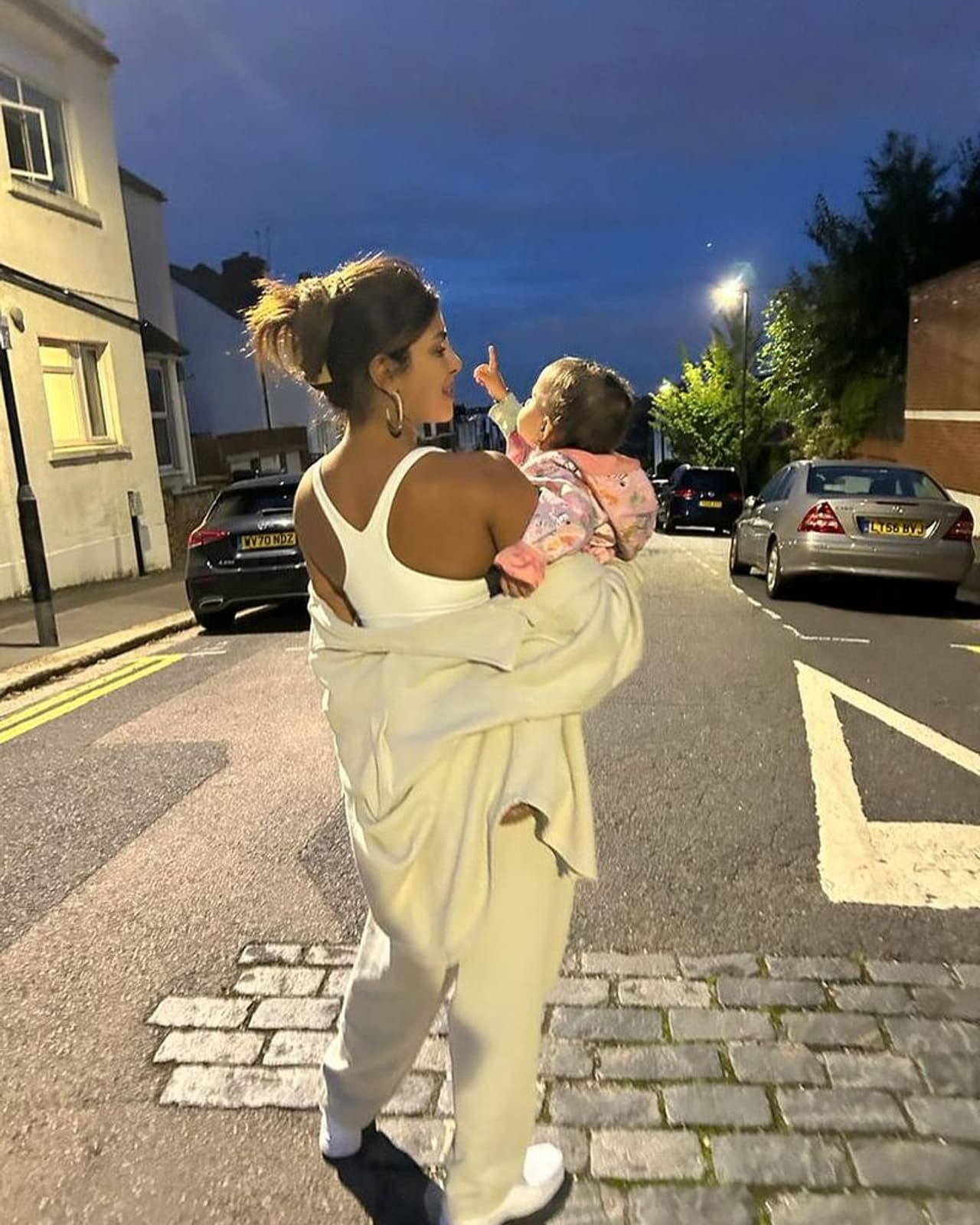 ప్రస్తుతం ఈ బ్యూటీ లండన్ వీధుల్లో దిగిన ఫోటోలను పంచుకుంది. తన కూతురుని ఎత్తుకుని దిగిన ఫోటోలవి. రాత్రి సమయంలో రోడ్ల మీద తన కూతురుకి సూపర్ మూన్ని చూపిస్తుంది ప్రియాంక చోప్రా. జాకెట్ విప్పేసి బ్యాక్ అందాలతో ఆకర్షిస్తుంది. అయితే చందమామని చూసి ఆమె కూతురు ఆనందిస్తుండగా, ప్రియాంక చోప్రా సంబరపడుతుంది. ఈ పిక్స్ వైరల్ అవుతున్నాయి.