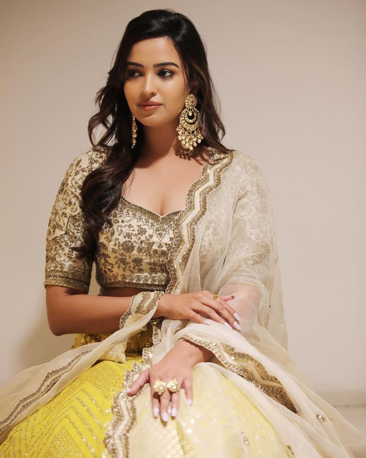 అందుకే తన ఇంస్టాగ్రామ్ లో హాట్ హాట్ ఫోటో షూట్స్ కి తెరలేపింది. తాజాగా క్రీం కలర్ శారీలో కళ్ళు చెదిరే ఫోజులతో పూజిత మెస్మరైజ్ చేస్తోంది. కొంగు జారుతున్నట్లుగా ఉన్న ఫోజుల్లో అదుర్స్ అనిపిస్తోంది. ఏదో ఊహల్లో విహరిస్తున్నట్లుగా ఉన్న అందమైన రొమాంటిక్ లుక్స్ తో పూజిత ఆకట్టుకుంటోంది.