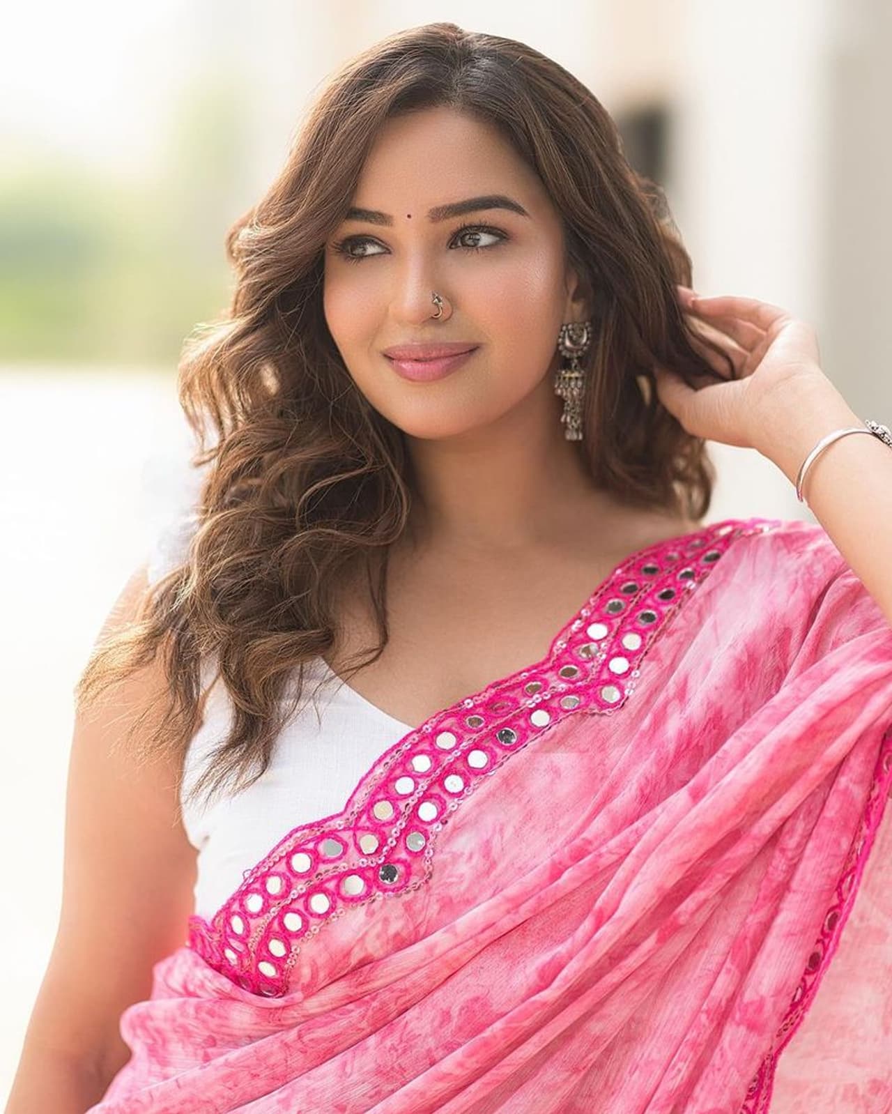 పూజిత కళ్ళు చెదిరే చీరకట్టులో స్టైలిష్ గా, అందంగా కనిపిస్తోంది. ఆమె ఫోజులు చూడ ముచ్చటగా ఉన్నాయి. పూజిత మోడ్రన్ డ్రెస్సులతో పాటు చీరకట్టులో కూడా అందంగా కనిపించగలనని నిరూపించింది.