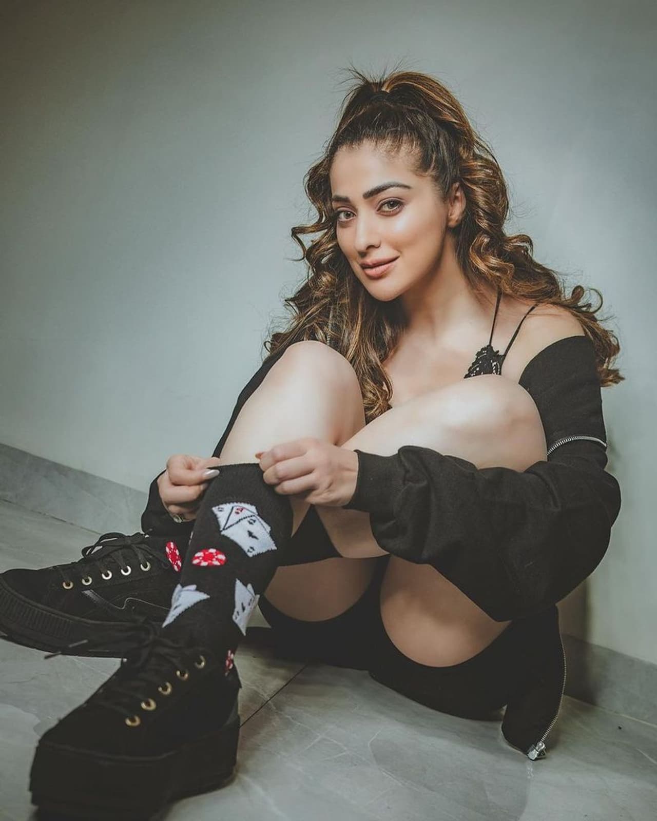 బ్లాక్ డ్రెస్ లో రాయ్ లక్ష్మి ఇస్తున్న ఫోజులు నెవర్ బిఫోర్ అనే చెప్పాలి. సిట్టింగ్ ఫోజులో తన థండర్ థైస్ తో ఇస్తున్న ఫోజులు యువతలో హీటు పెంచేస్తున్నాయి. అంతలా తన గ్లామర్ తో ఈ బోల్డ్ బ్యూటీ అరెస్ట్ చేస్తోంది. అలాగే తన టాప్ విప్పేస్తూ లోపల దాగున్న బ్రా సొగసుతో మంటలు రేపుతోంది ఈ స్టన్నింగ్ బ్యూటీ.