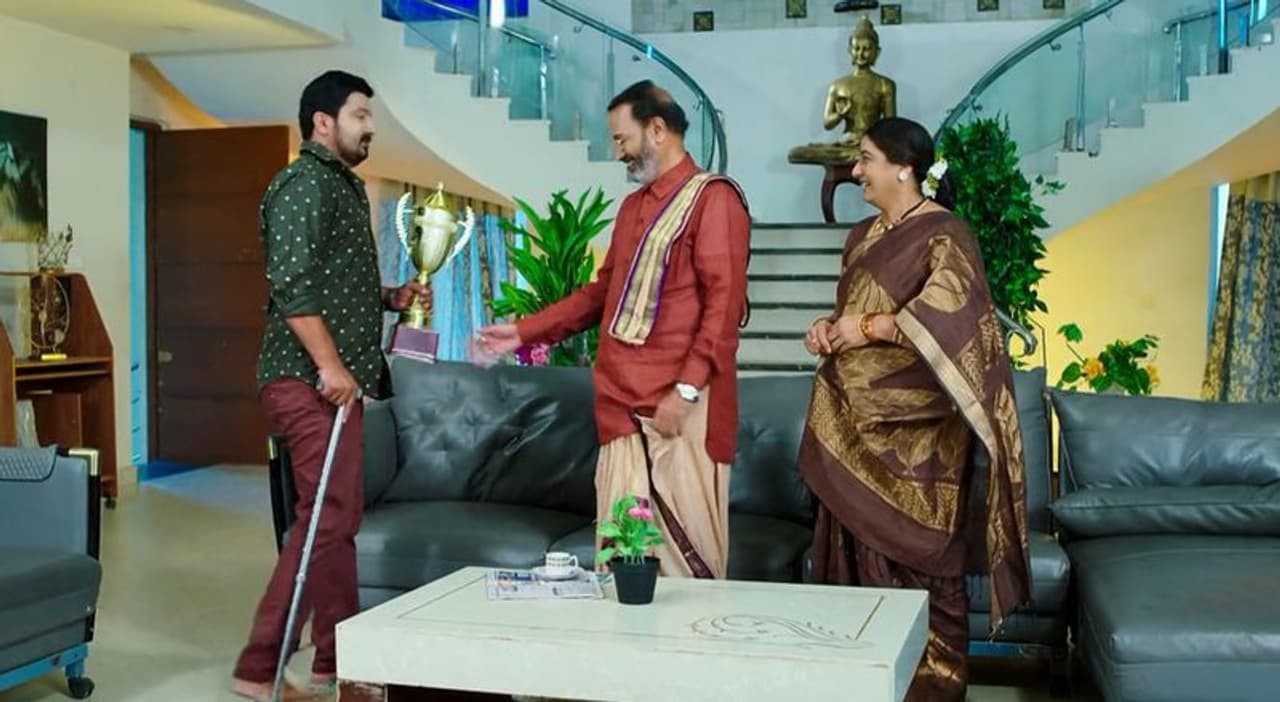 ఈరోజు ఎపిసోడ్ లో మాధవ(madhava) ట్రోపిని తీసుకొని ఇంట్లోకి వెళ్లడంతో రామ్మూర్తి దంపతులు అది చూసి సంతోష పడుతూ ఉంటారు. దేవి గెలిచింది అని ఆనందపడుతూ ఉంటారు. అప్పుడు దేవి, రాధ వాళ్ళు ఎక్కడ ఉన్నారు అని అడగగా వాళ్ళు కొంచెం షాక్ లో ఉన్నారు అని అంటాడు మాధవ. మరొకవైపు దేవుడమ్మ,దేవి(devi) రాకపోవడంతో ఆదిత్యను ప్రశ్నల మీద ప్రశ్నలు వేస్తూ వేస్తూ ఉండగా ఆదిత్య మాత్రం ఏమీ మాట్లాడకుండా మౌనంగా ఉంటాడు.