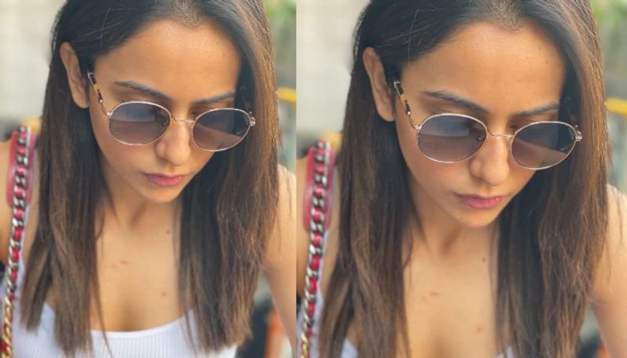 - టాప్ యాంగిల్ లో అందాలు ఆరబోస్తున్న రకుల్ ప్రీత్.. సన్ గ్లాసెస్ పెట్టుకొని మైండ్ బ్లాక్ చేస్తున్న ఢిల్లీ భామా