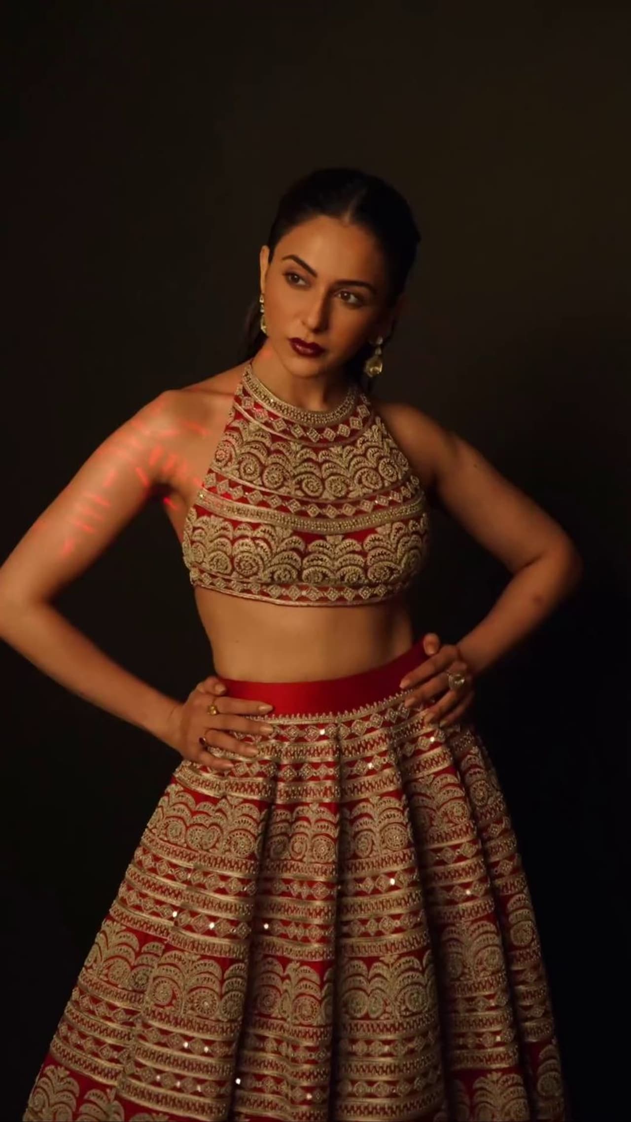 కళ్ళు చెదిరే లెహంగాలో మెరుపులు మెరిపిస్తున్న రకుల్..పెదవుల్లో మత్తుమందు దాచినట్లు ఫోజులు