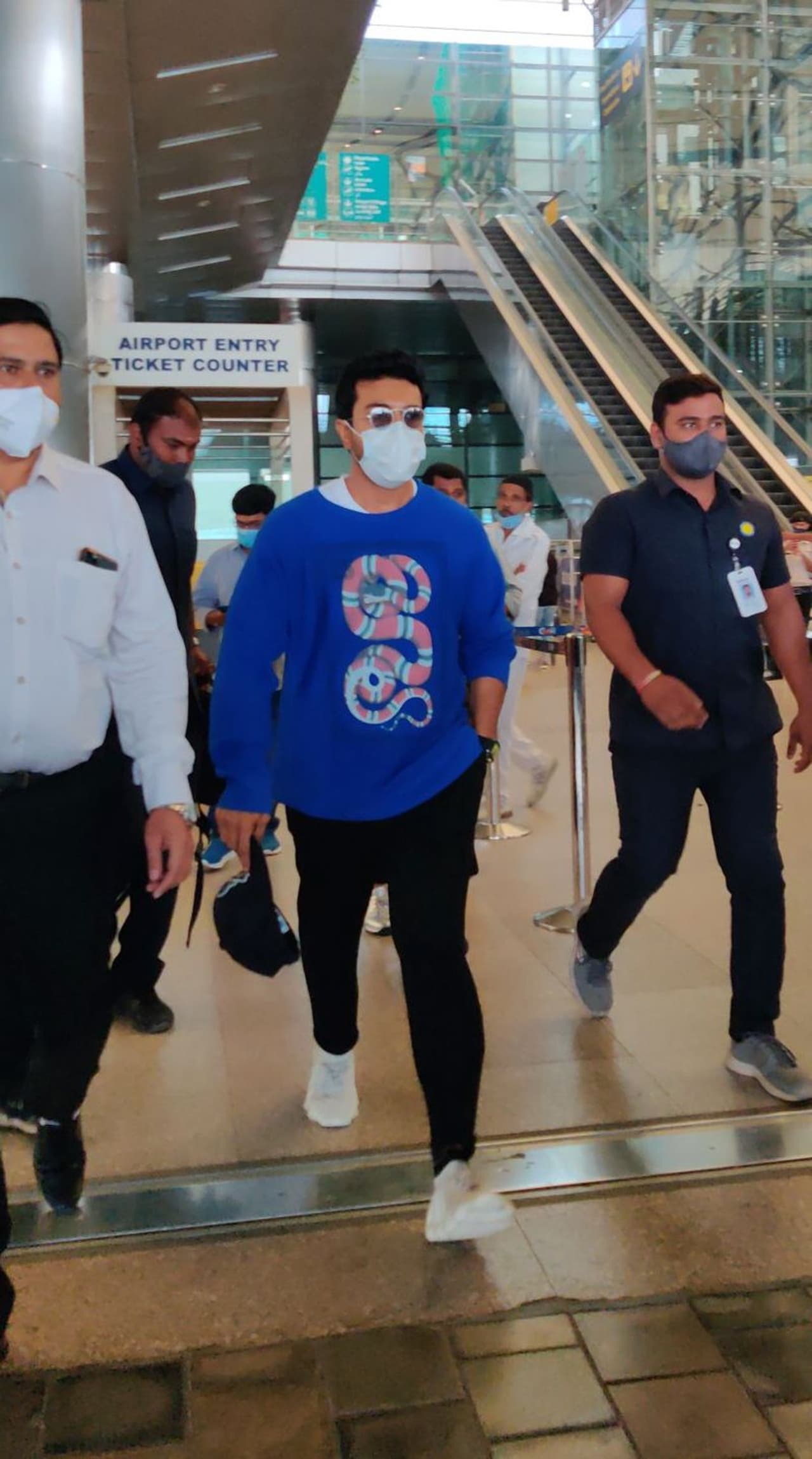 రామ్చరణ్ ప్రస్తుతం `ఆర్ఆర్ఆర్` చిత్రంలో నటిస్తున్నాడు. చిత్రీకరణ పూర్తి చేసుకుని రిలీజ్ కి రెడీ అవుతుంది. మరోవైపు శంకర్తో `ఆర్సీ15` సినిమా చేస్తున్నాడు రామ్చరణ్. ఇటీవల ఫస్ట్ షెడ్యూల్ని కూడా పూర్తి చేసుకుంది. ఇదిలా ఉంటే ప్రస్తుతం దుబాయ్ నుంచి వస్తూ మీడియా కంటపడ్డాడు. హైదరాబాద్ ఎయిర్పోర్ట్ లో కెమెరాలకు చిక్కాడు రామ్చరణ్. దీంతో క్లిక్మనిపించాడు. ఇందులో రాయల్ బ్లూ టీషర్ట్ లో అదరగొడుతున్నాడు రామ్చరణ్. అందరి చూపులను తనవైపు తిప్పుకున్నారు. స్టయిలీస్ గ్లాసెస్, బ్లాక్ ప్యాంట్, వైట్ షూట్తో, మాస్క్ ధరించి స్టయిల్గా నడుచుకుంటూ వస్తున్నట్టుగా ఉన్న ఈ పిక్స్ ఫ్యాన్స్ ని ఖుషీ చేస్తున్నాయి. Ram Charan in airport.