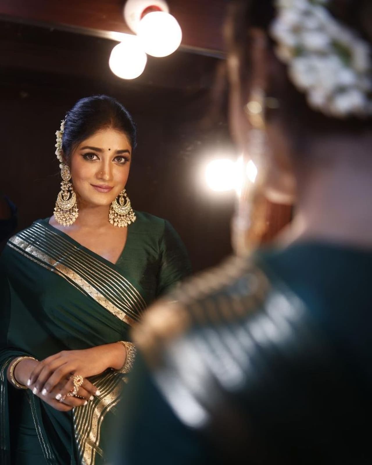 తాజాగా డింపుల్ హయతి తన అందంతో యువతని మెస్మరైజ్ చేసింది. మోడ్రన్ డ్రెస్సుల్లో యువతకి నిద్ర దూరం చేసే డింపుల్హయతి తాజాగా నిండిన చీరకట్టులో పద్దతిగా ఫోజులు ఇచ్చింది. గ్రీన్ శారీలో డింపుల్ హయతి మిర్రర్ ముందు ఆకర్షించేలా ఇచ్చిన ఫోజులు వైరల్ అవుతున్నాయి.