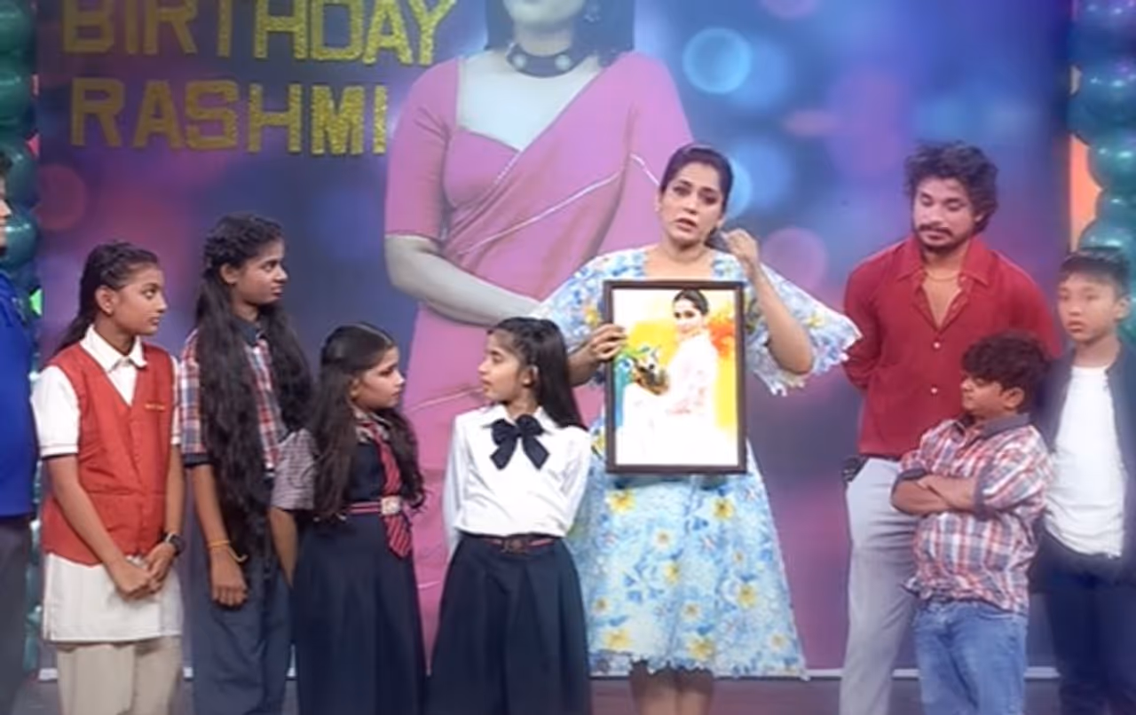 డాన్స్ మాస్టర్ పండు తన డ్యాన్స్ పెర్ఫామెన్స్ తో రష్మీకి పుట్టిన రోజు శుభాకాంక్షలు చెబుతూ ఇంప్రెస్ చేశాడు. చాలా అందంగా మాస్టర్ పండు ఆమెకి బర్త్ డే విషెష్ చెప్పడం విశేషం. ఇక చివర్లో పిల్లలు రష్మీకి ఒక ఫోటో గిఫ్ట్ గా ఇచ్చారు. ఆ ఫోటో చూడగానే ఒక్కసారిగా రష్మీ వెక్కి వెక్కి ఏడ్చేసింది.