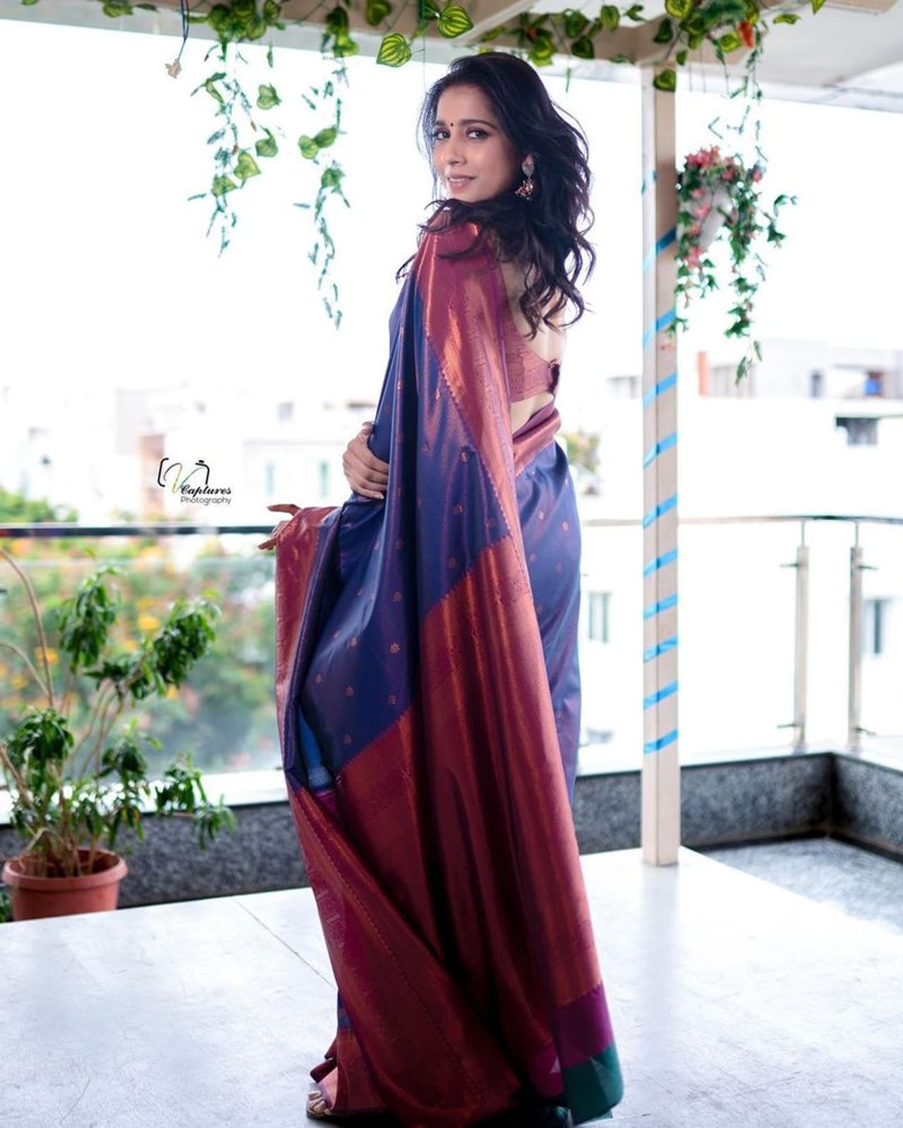 కళ్ళు చెదిరే పట్టు చీరలో చిరునవ్వులు చిందిస్తూ, ఇస్తున్న సిట్టింగ్ ఫోజులు అదరహో అనిపిస్తున్నాయి. అంతేకాదు. నిలువెత్తు సోయగాలని ఫ్రంట్ ఆంట్ బ్యాక్ చూపిస్తూ కుర్రకారుపై అందాల వల విసురుతోంది.
