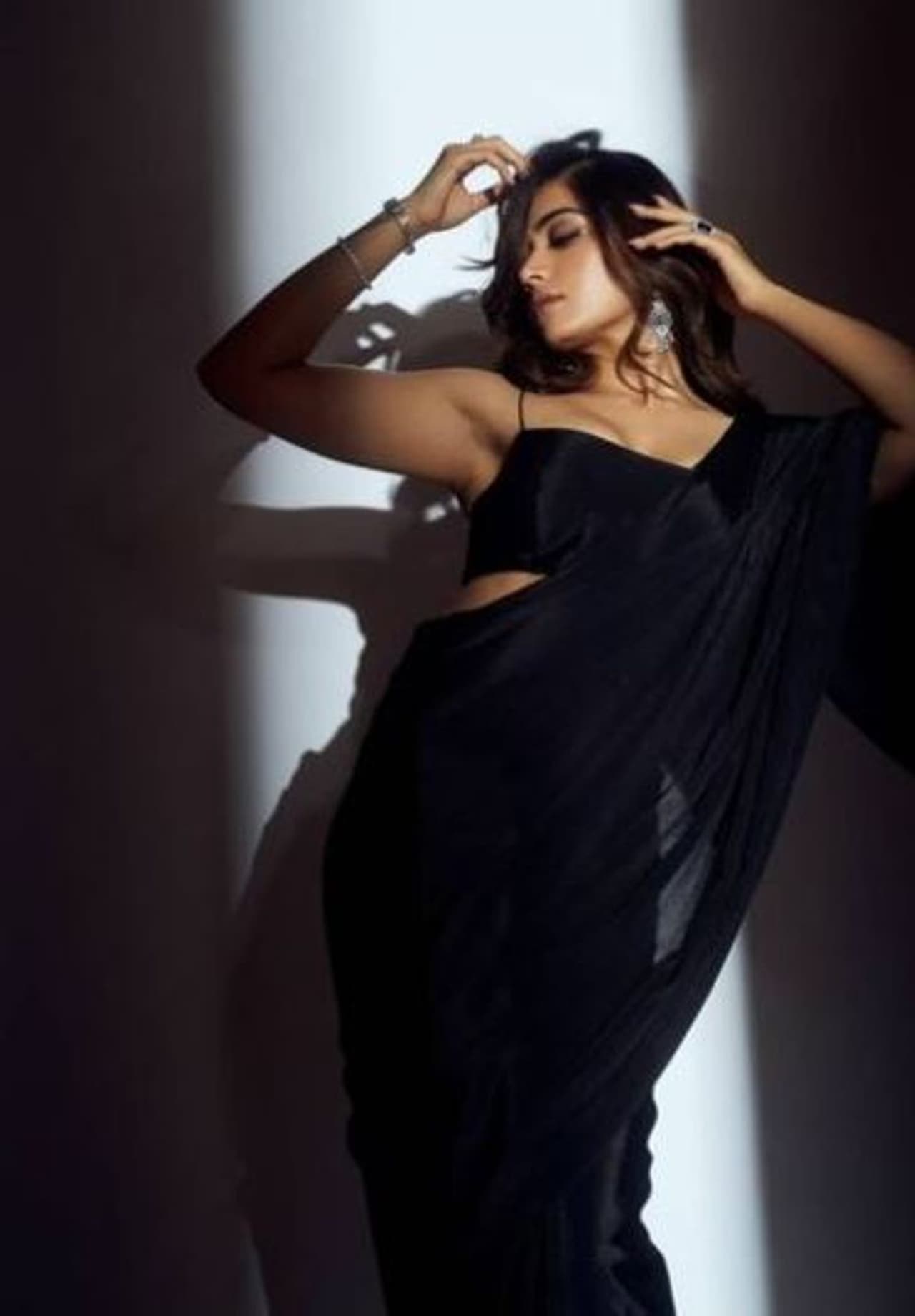 రష్మిక తాజాగా సోషల్ మీడియాలో కొన్ని ఫోటోలు షేర్ చేసింది. చీరకట్టులో రష్మిక మరింత అందంతో వెలిగిపోతోంది. ట్రెండీ డ్రెసుల్లో హాట్ గా కనిపించే రష్మిక చీర కట్టులో అందానికే అందం అనిపిస్తోంది.