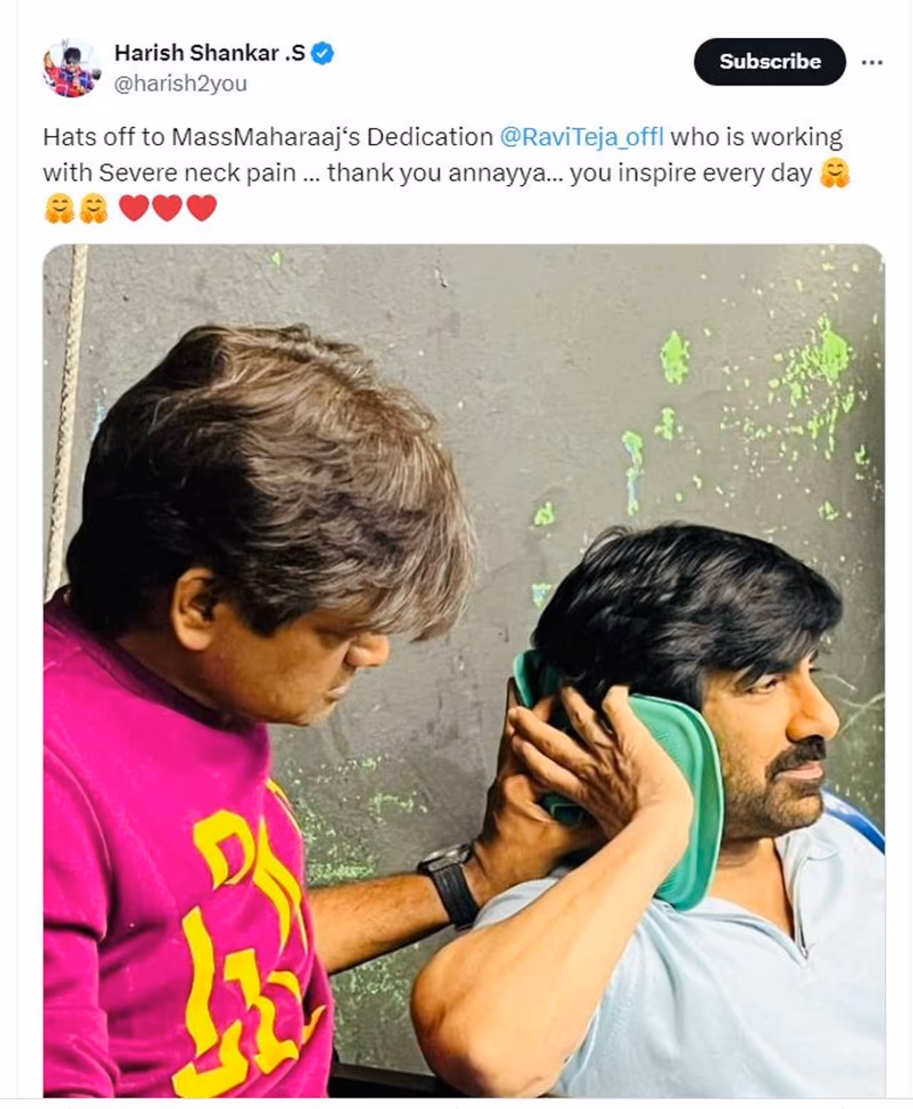 రవితేజ మెడకు ఏమైంది..? హరీష్ శంకర్ పోస్ట్ తో మాస్ మహారాజ్ ఫ్యాన్స్ లో ఆందోళన,